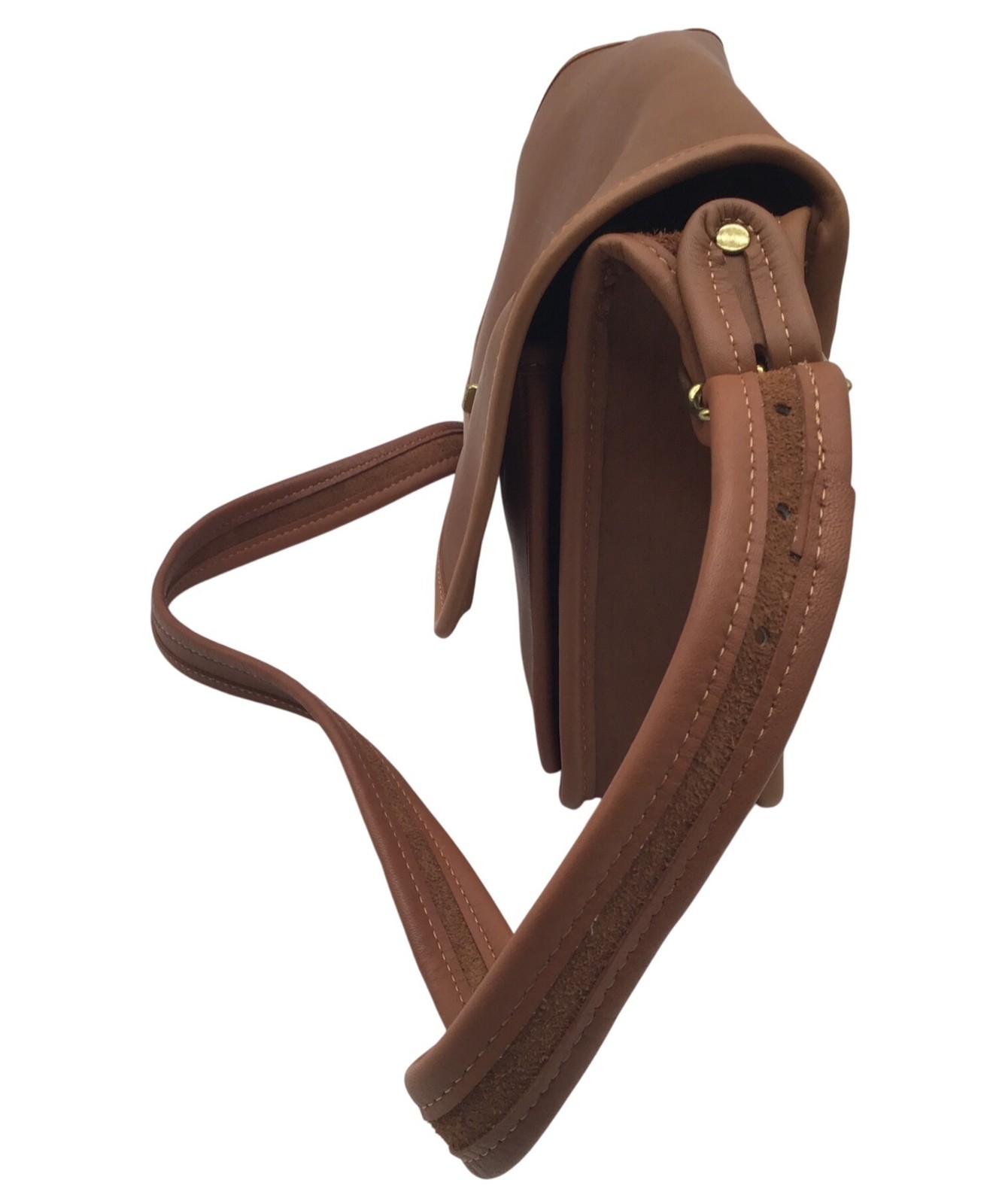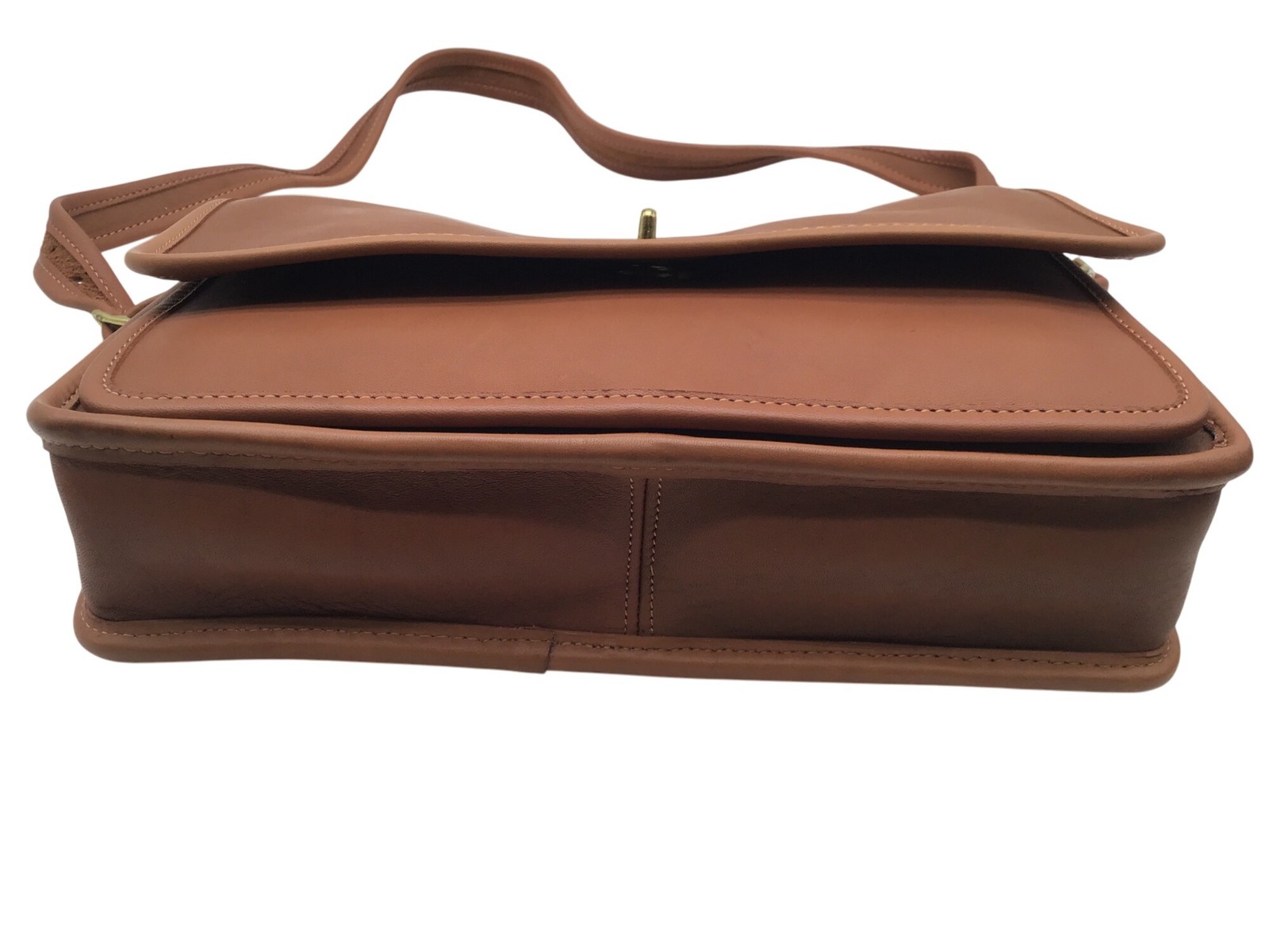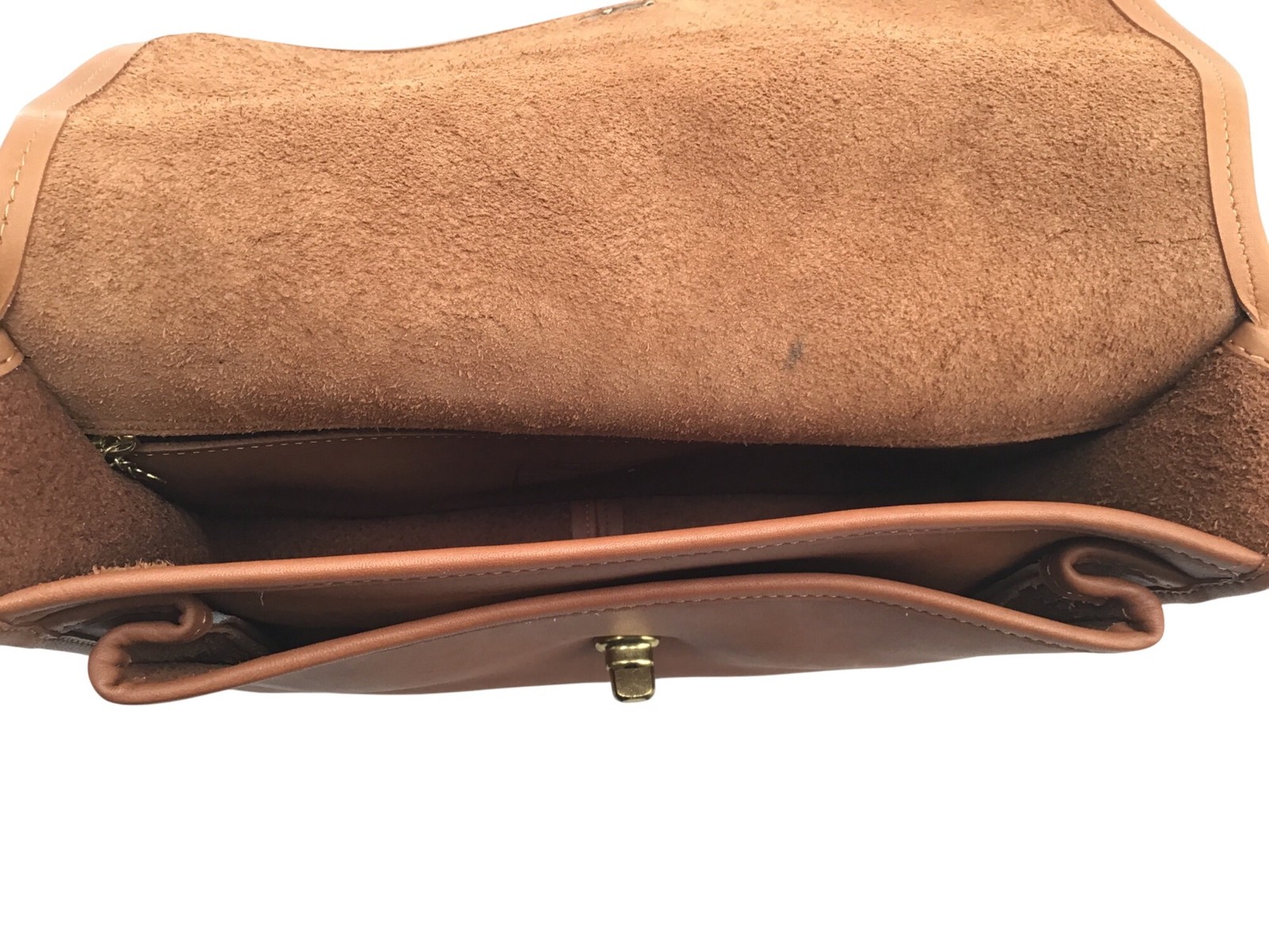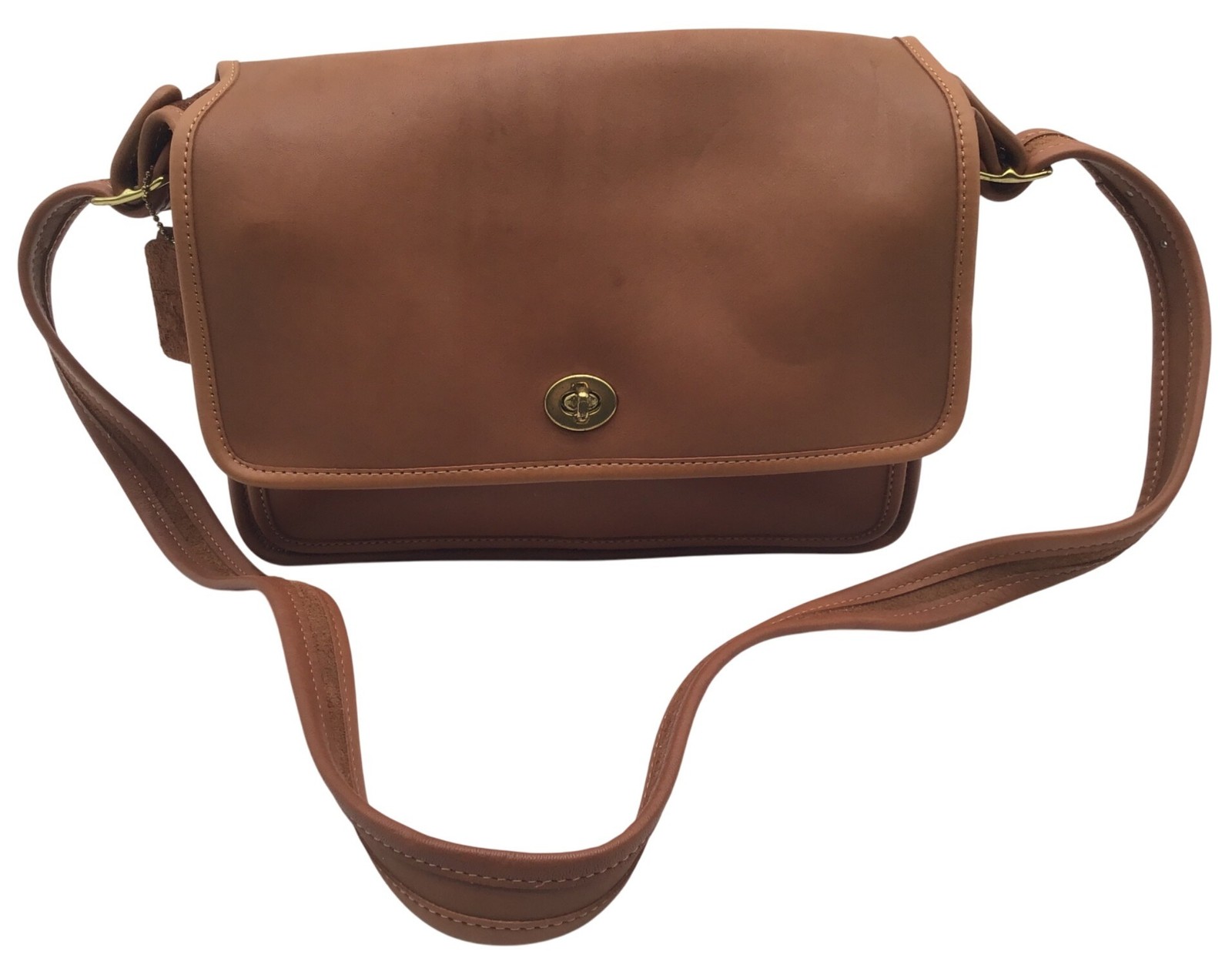 Vintage Coach Tan Leather Crossbody Bag With Adjustable Strap & Brass Hardware