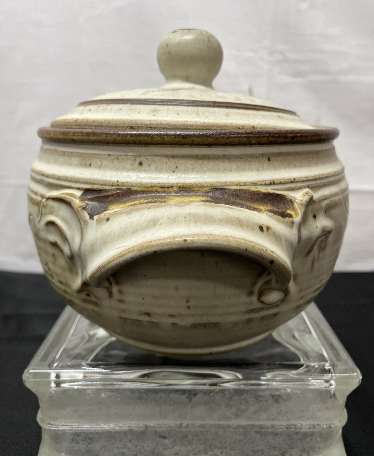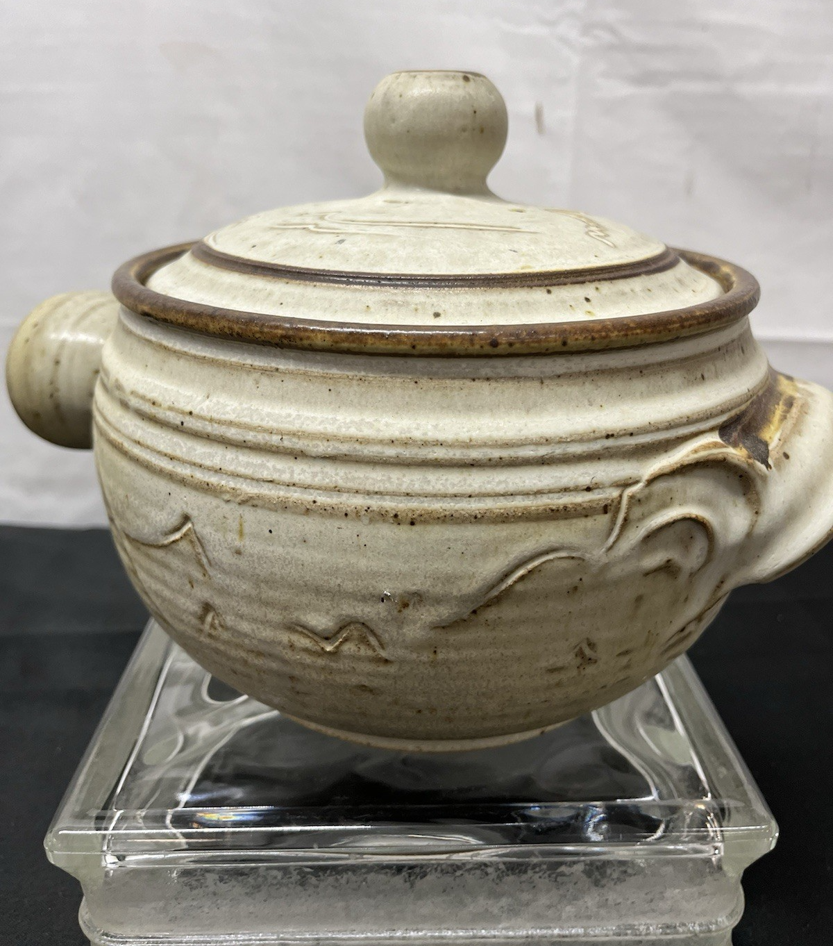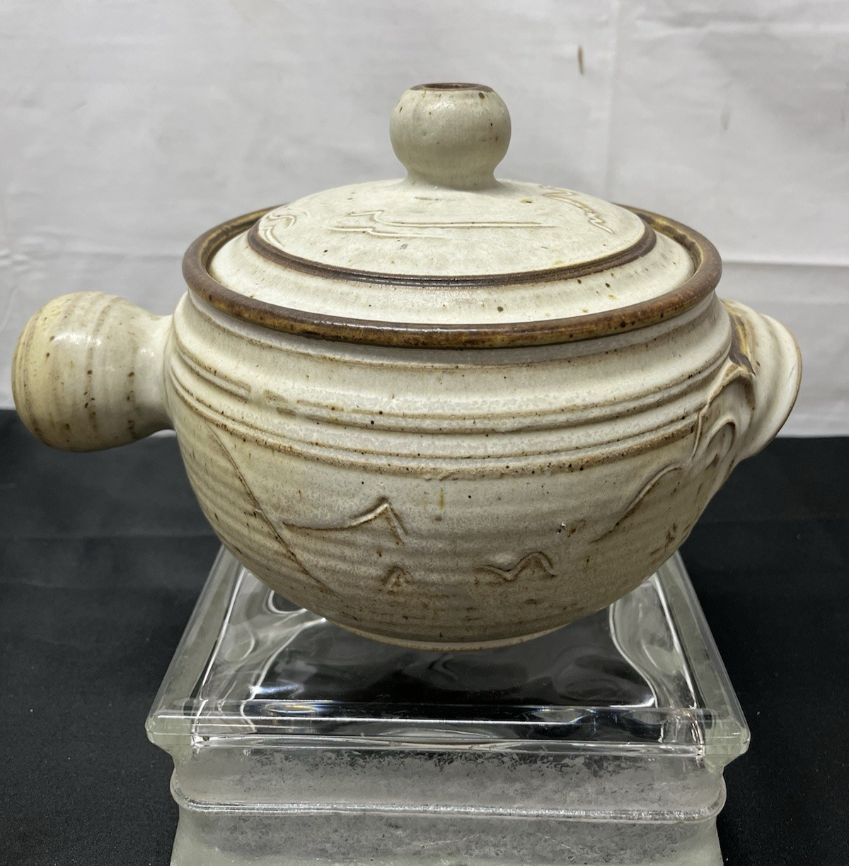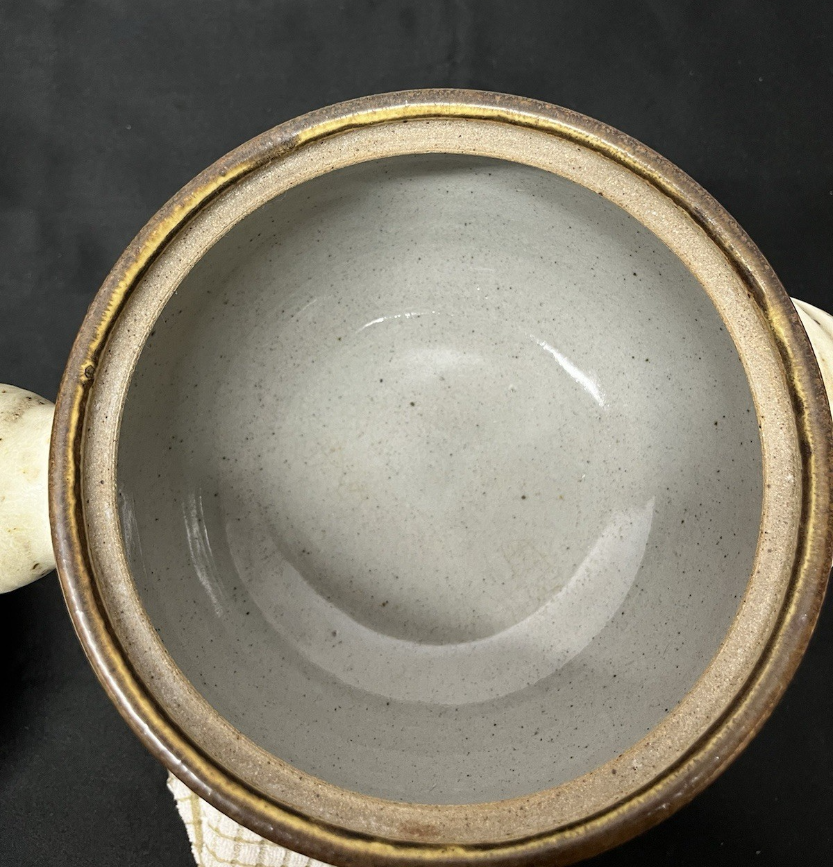 Vintage Crock-Pot with Lid and Handles Handmade and Hand Painted Stoneware