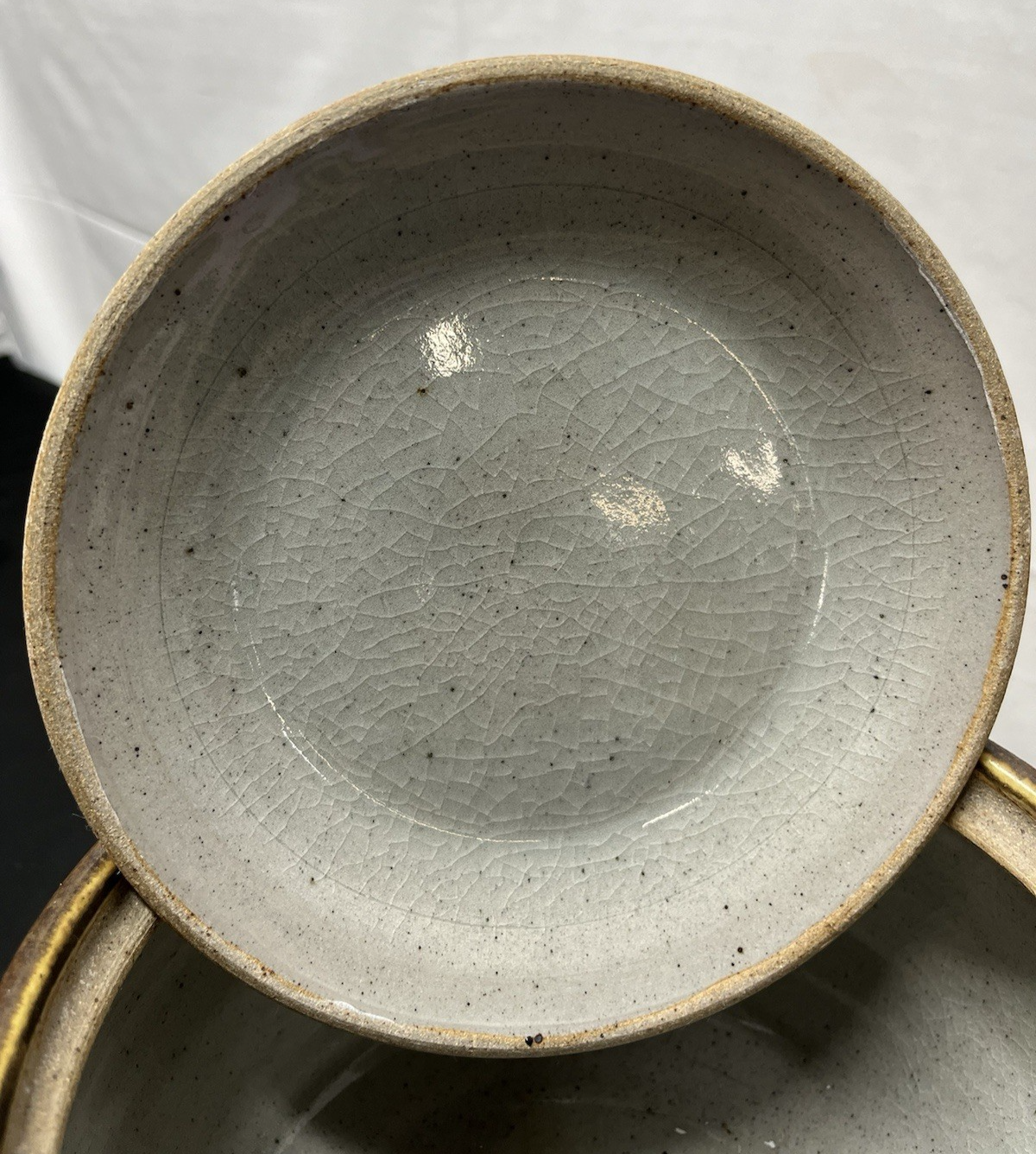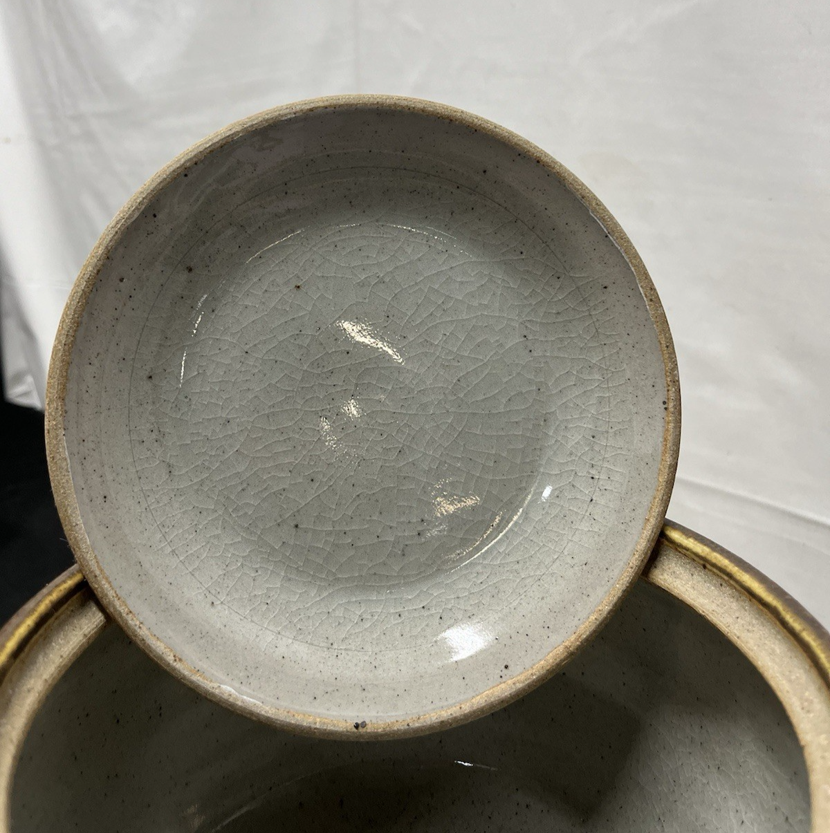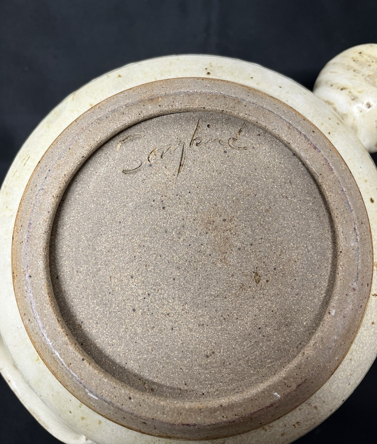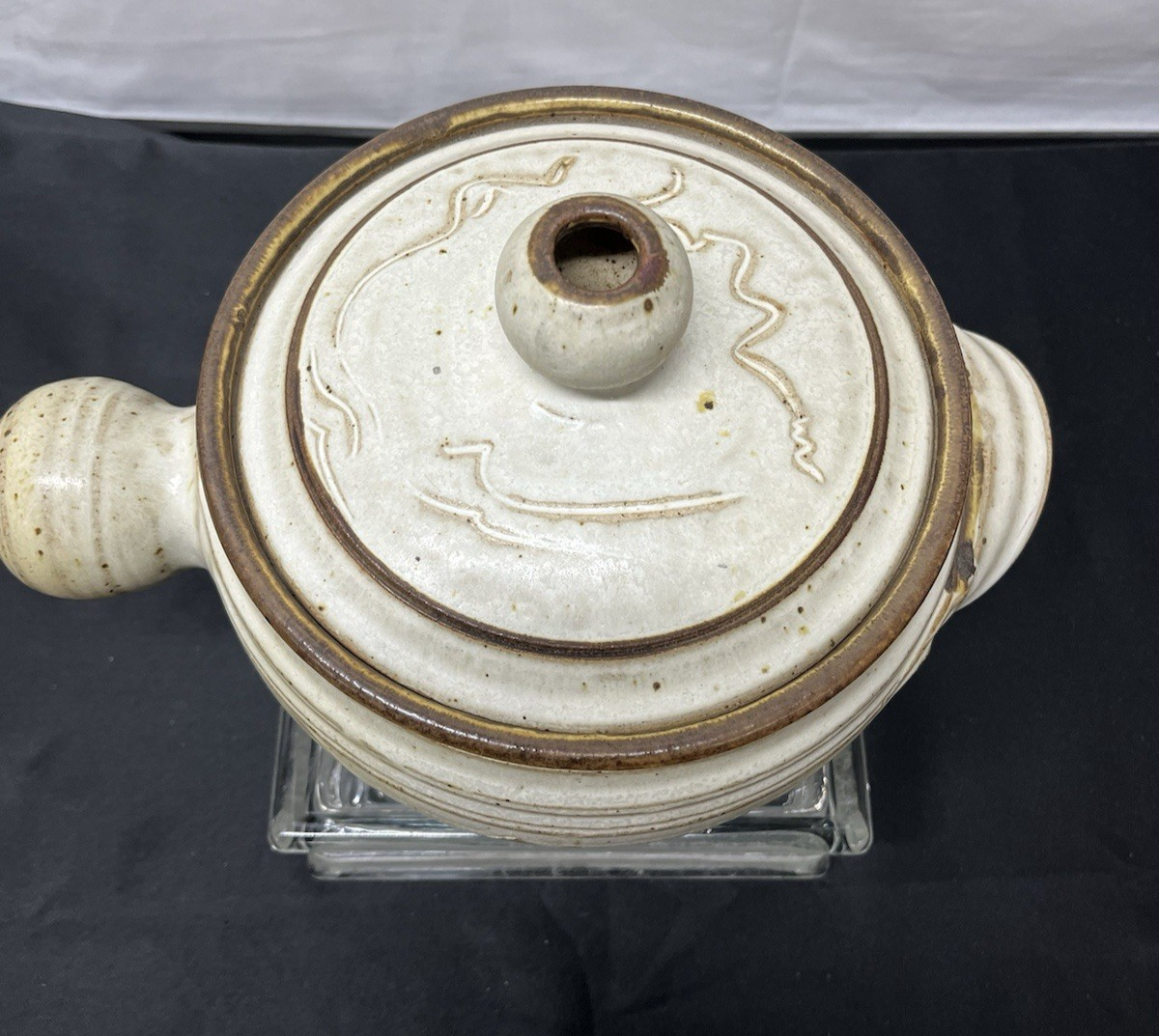 Vintage Crock-Pot with Lid and Handles Handmade and Hand Painted Stoneware