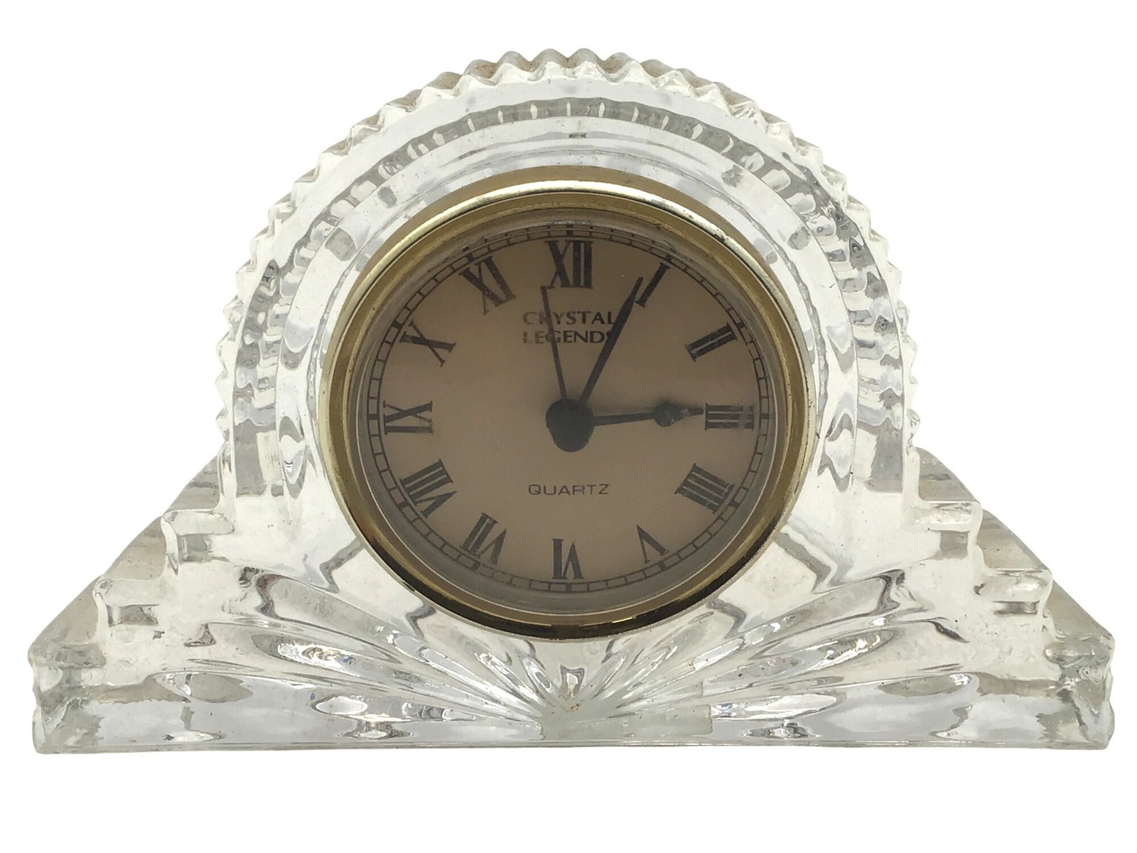Vintage Crystal Legend Quartz Clock With Gold Tone Bezel & Roman Numerals