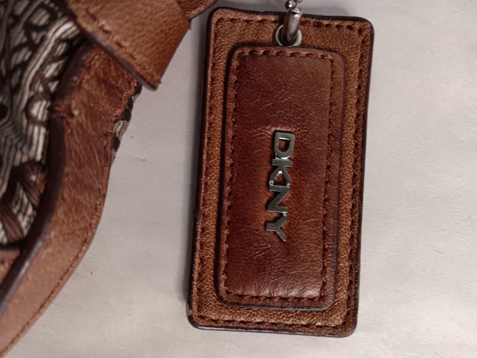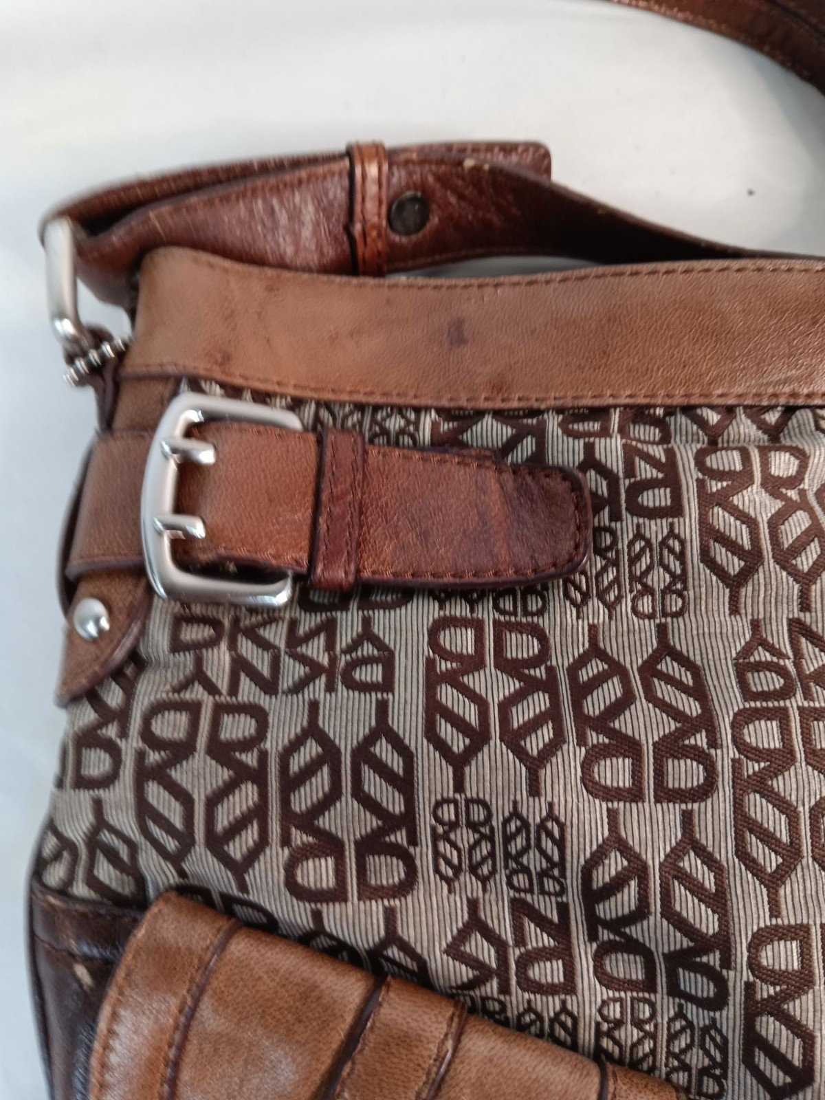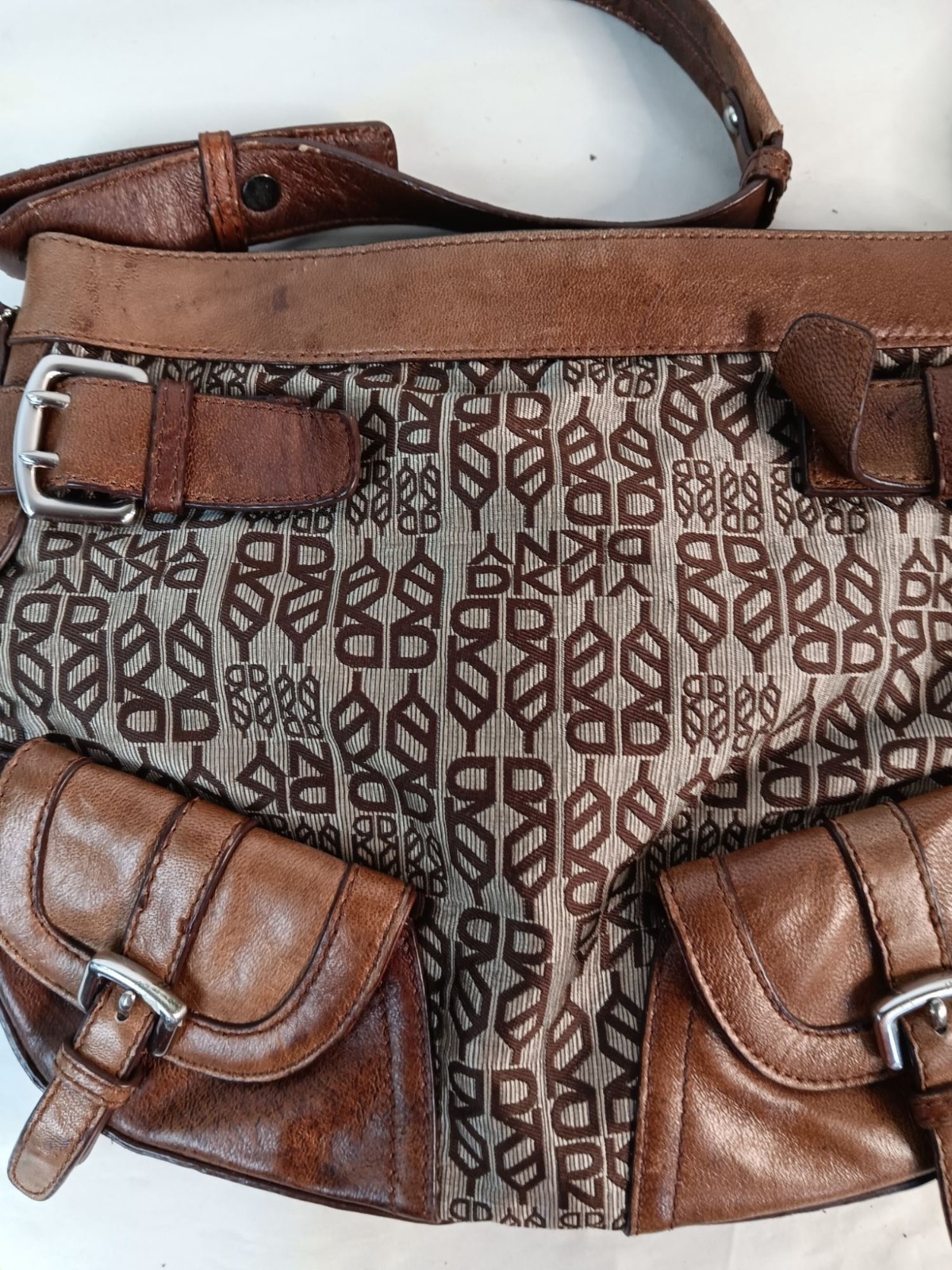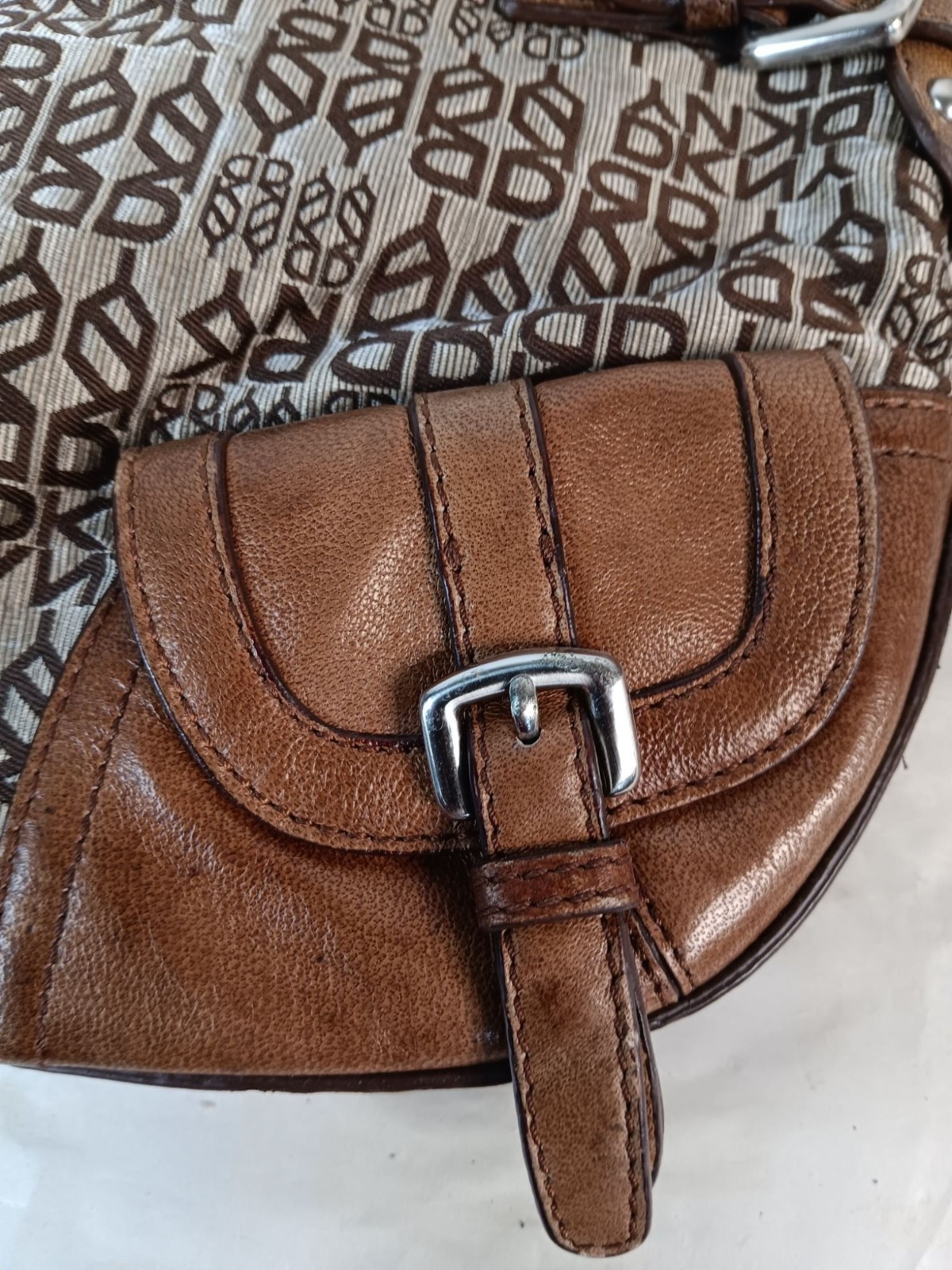 Vintage DKNY Legacy Brown Leather & Canvas Crossbody Bag Medium Size