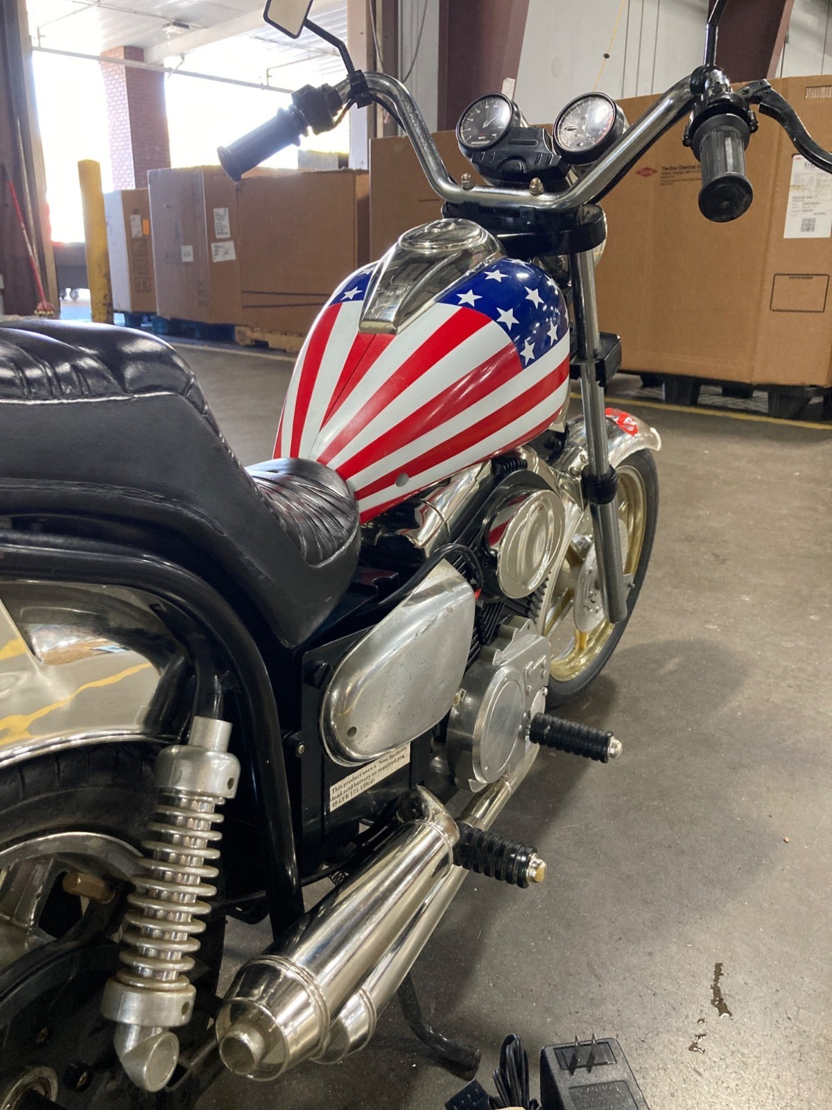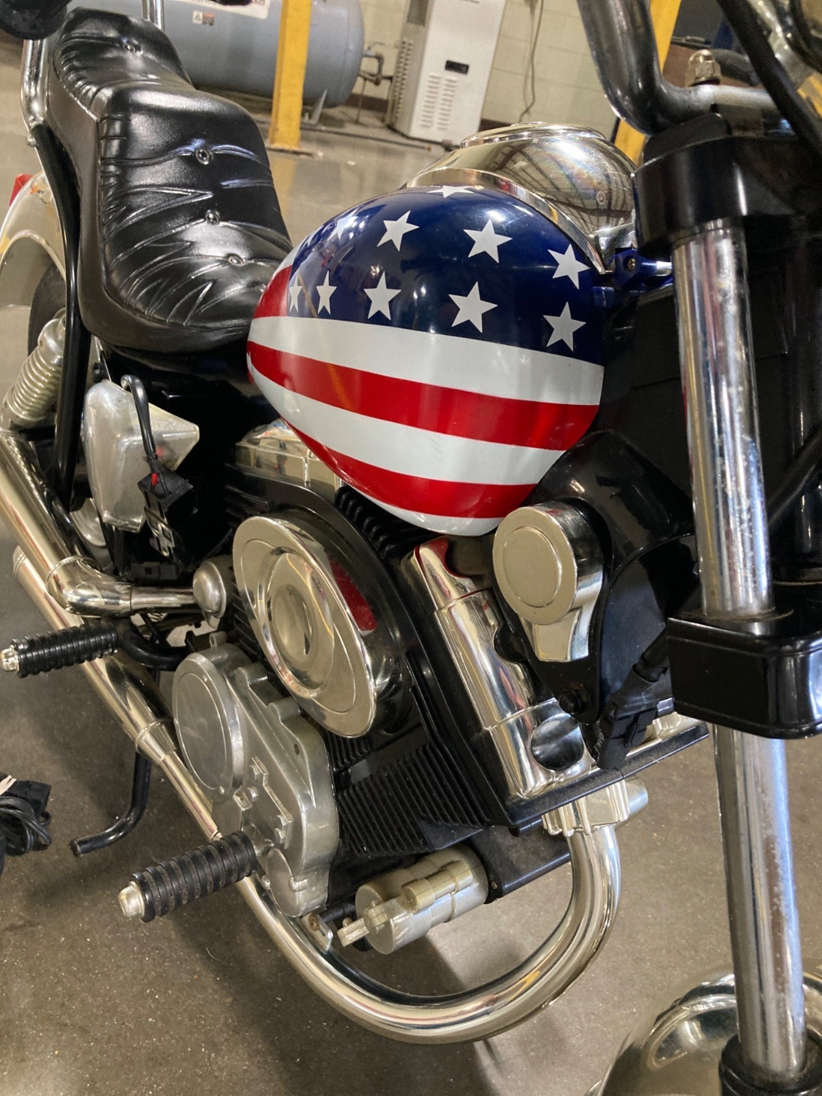 Vintage Electric Motorcycle Patriotic Stars & Stripes/Chrome Accent. Works!