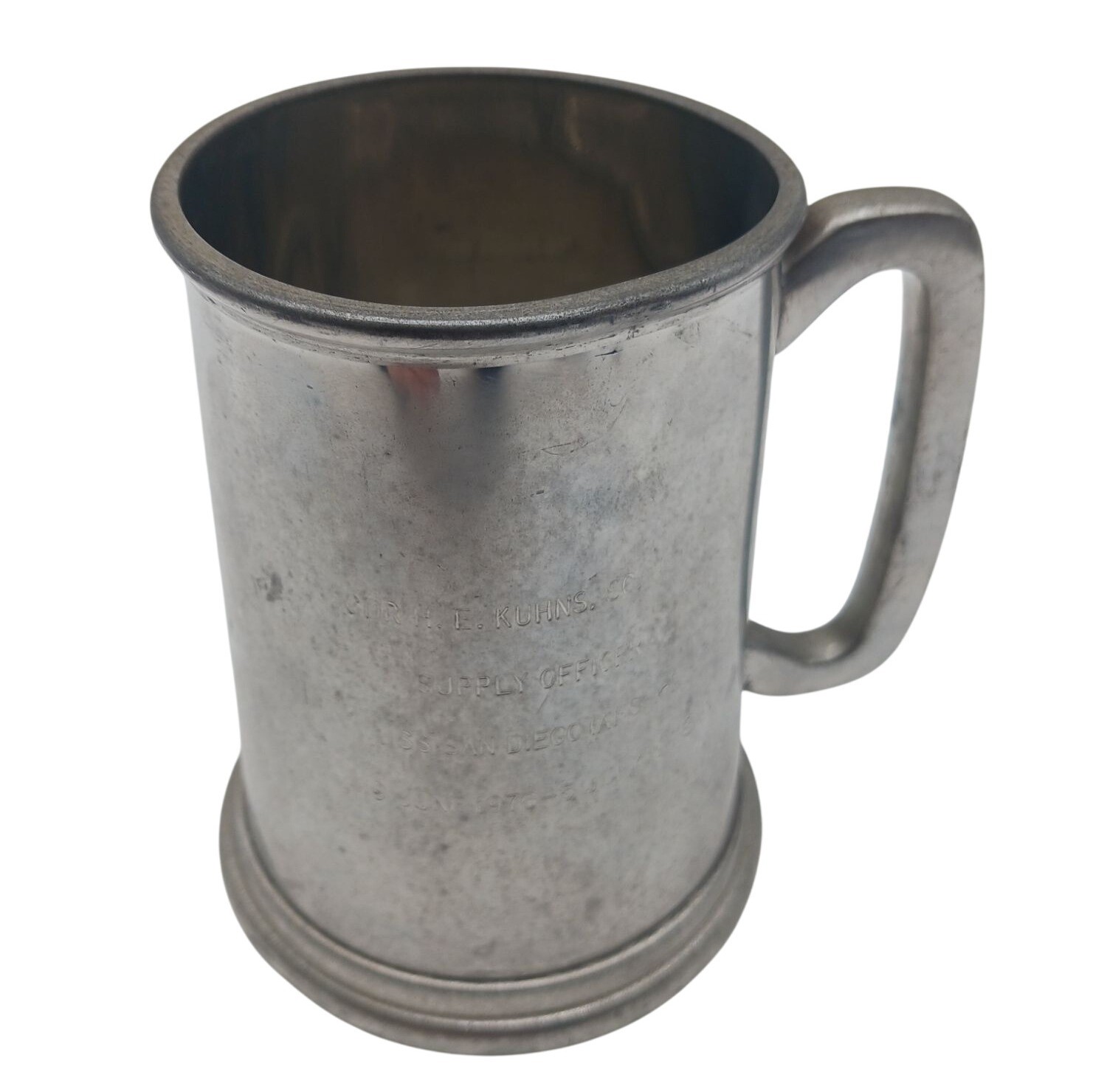 Vintage English Pewter Stein Engraved USS San Diego Supply Officer 1916 - 1918