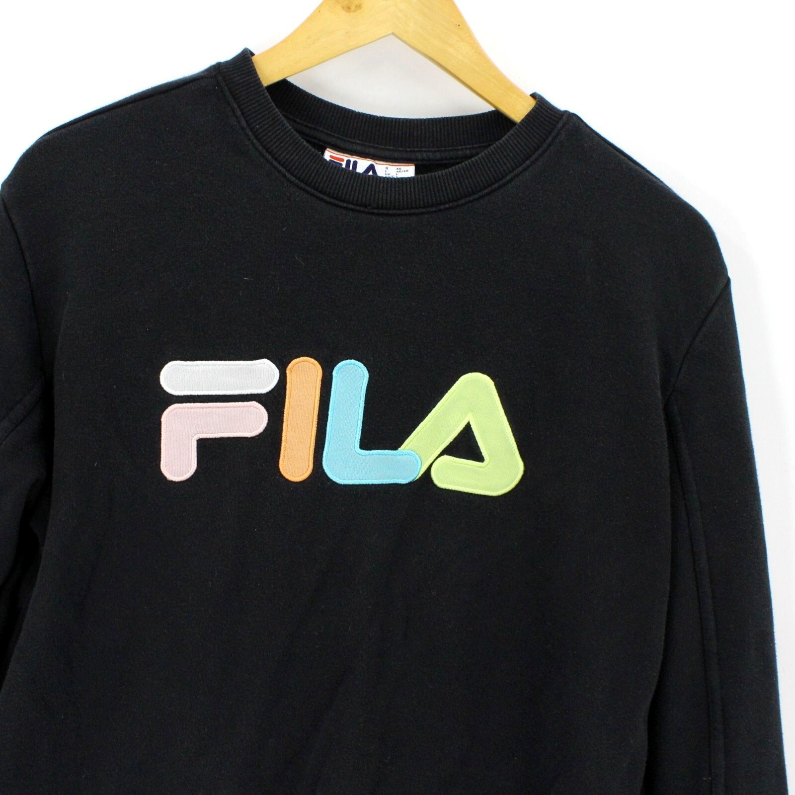 Vintage FILA Sweatshirt Crewneck Women's Black Long Sleeve Embroidered Logo Sz L