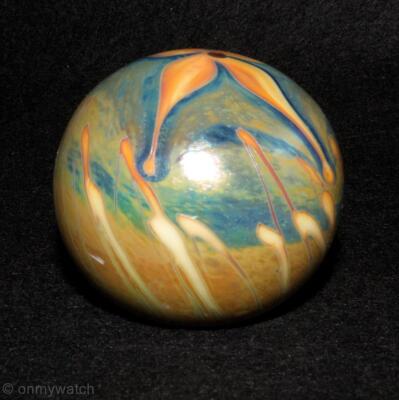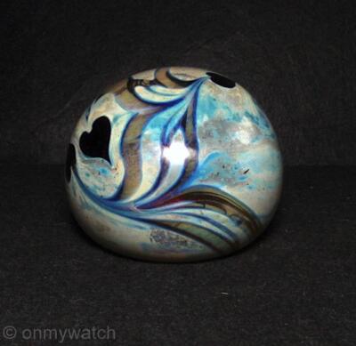 Vintage Floral SIGNED Stephen FELLERMAN Paperweight ArT GLaSs Cobalt IRIDESCENT