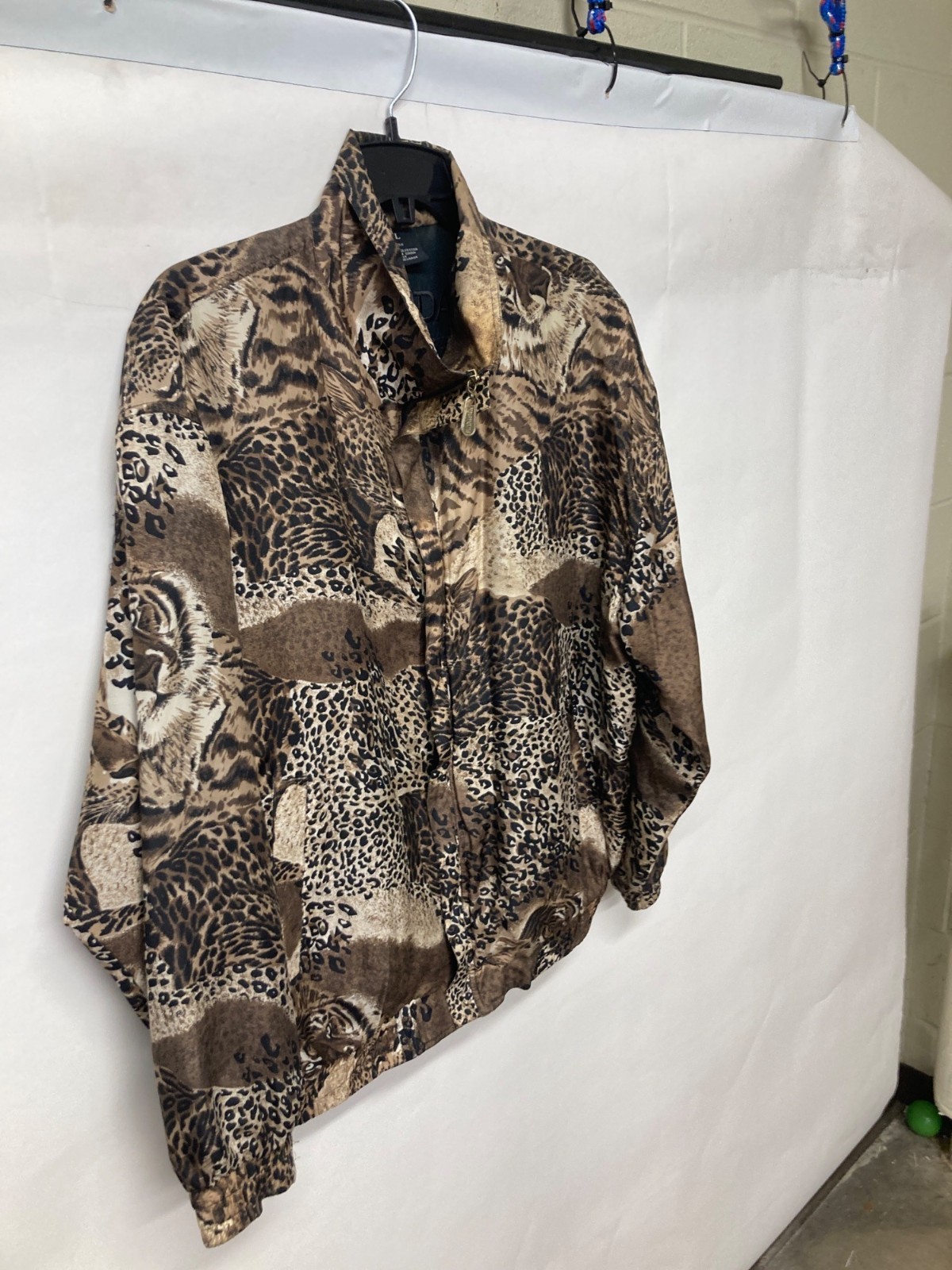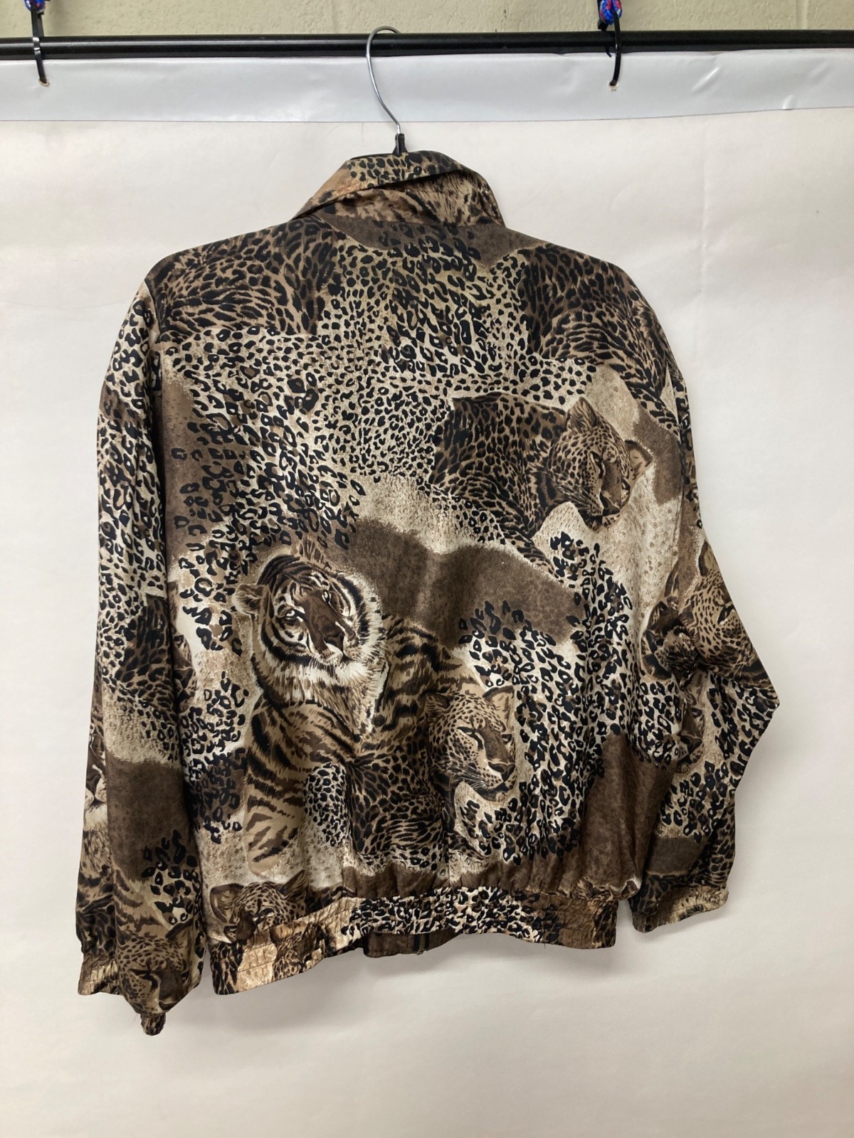 Vintage Fuda International Animal Print Silk Bomber Jacket Large 100% Silk Shell