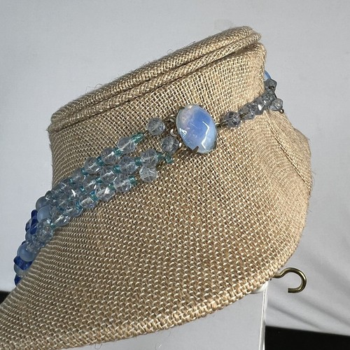 Vintage Glass Beaded Blue Triple Strand Necklace 18” Beautiful! Germany
