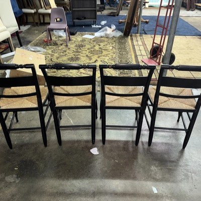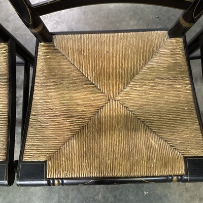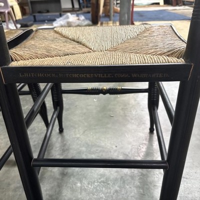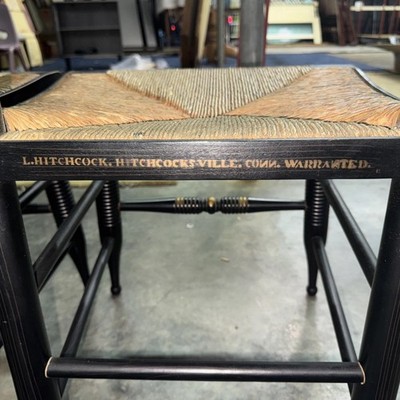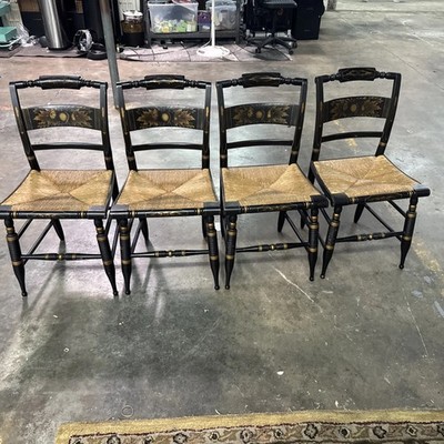 Vintage Hitchcock Style Side Chair Stenciled Turtle Back Rush Seat Set Of 4