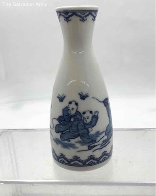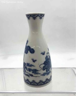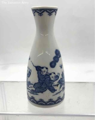Vintage Japanese Blue White Porcelain Children Landscape Collectible Sake Bottle