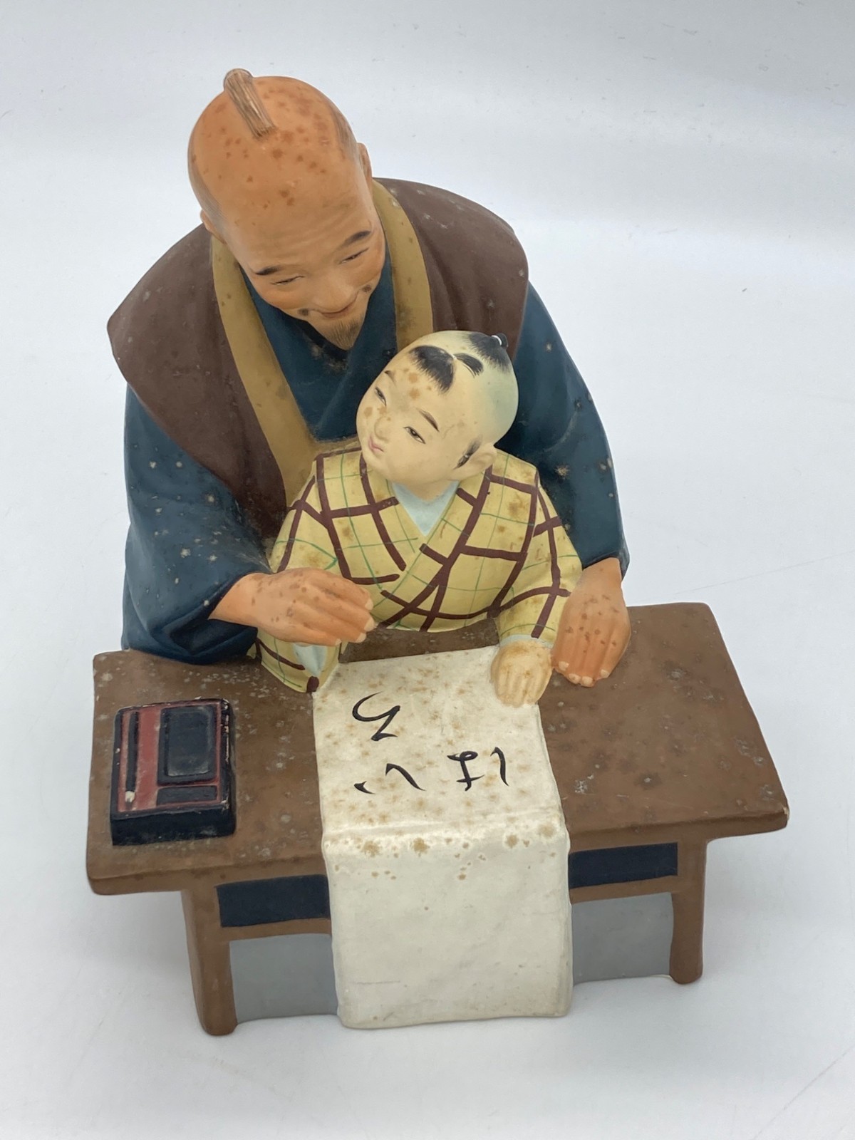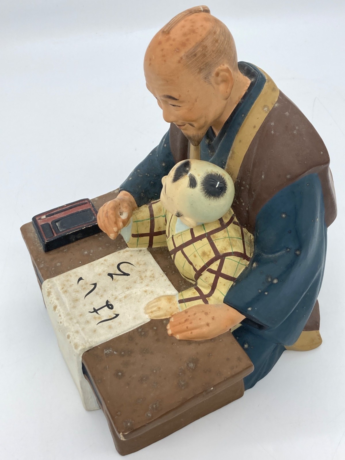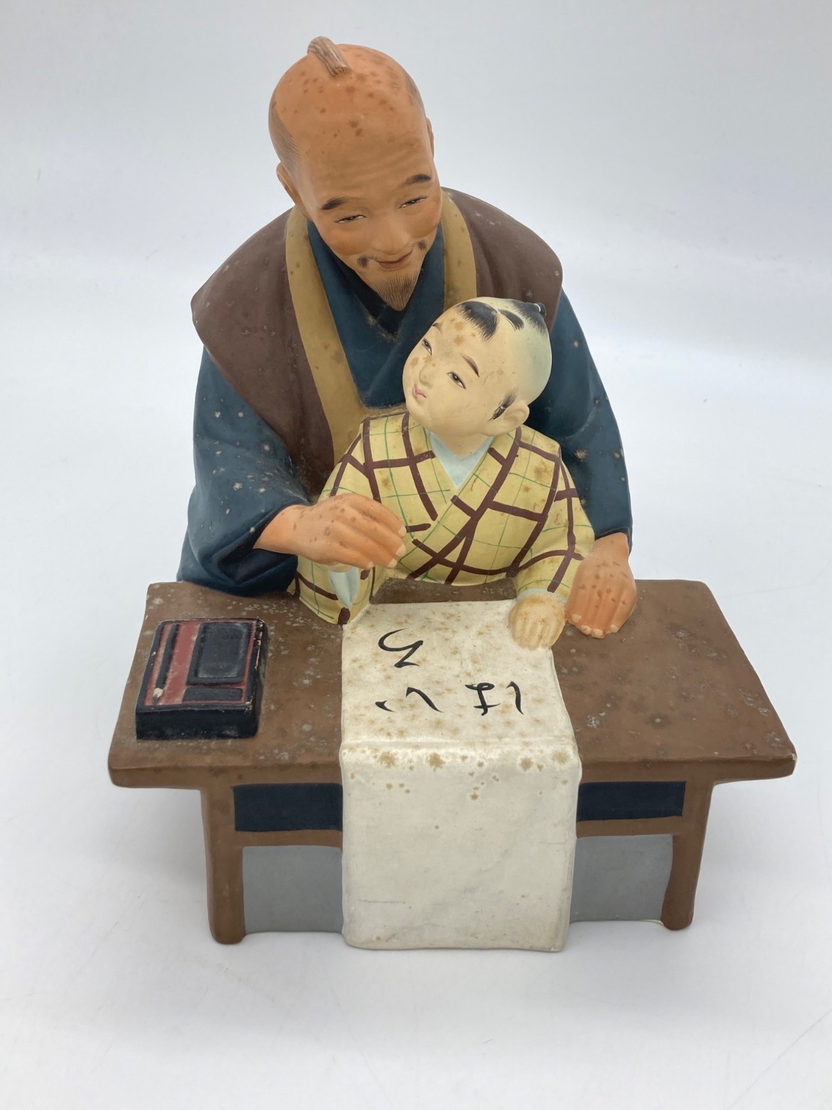 Vintage Japanese Ceramic Figurine Of Teacher & Child Writing Kanji