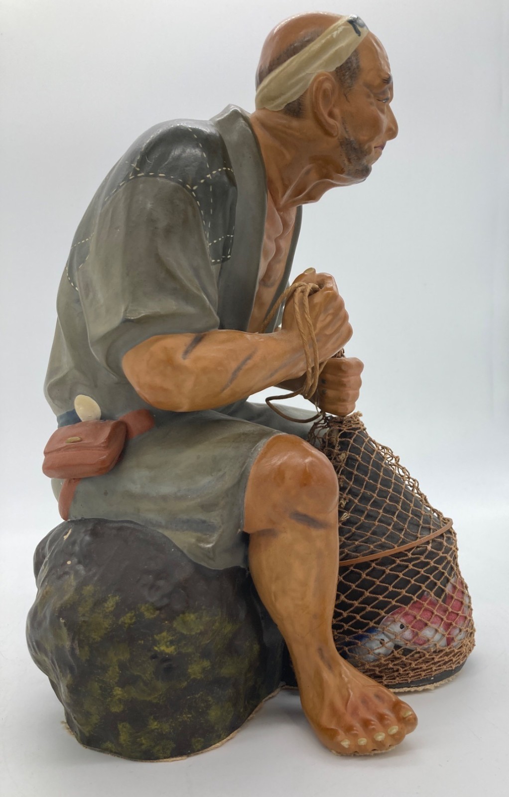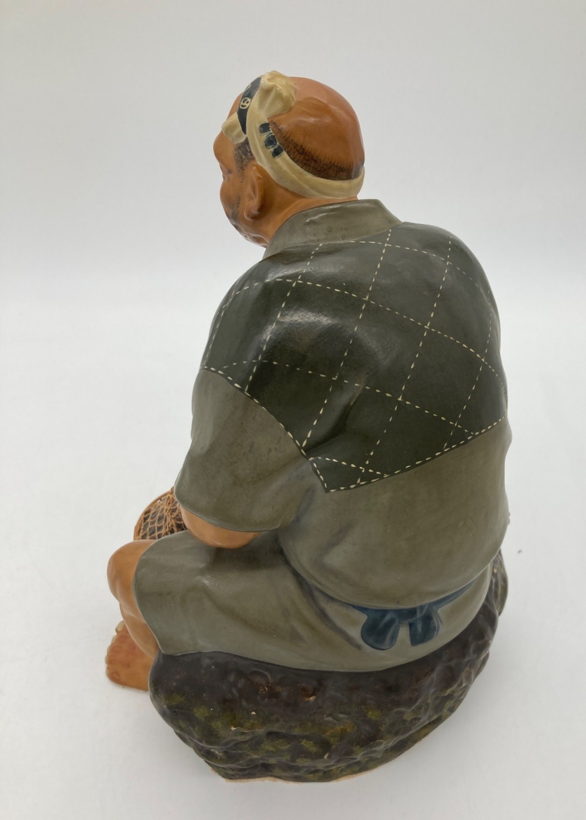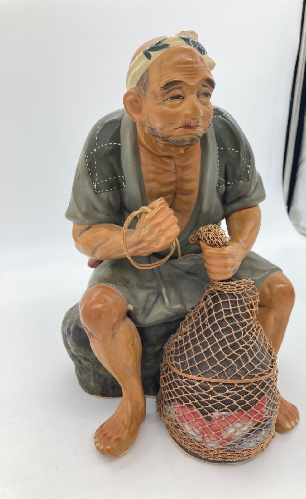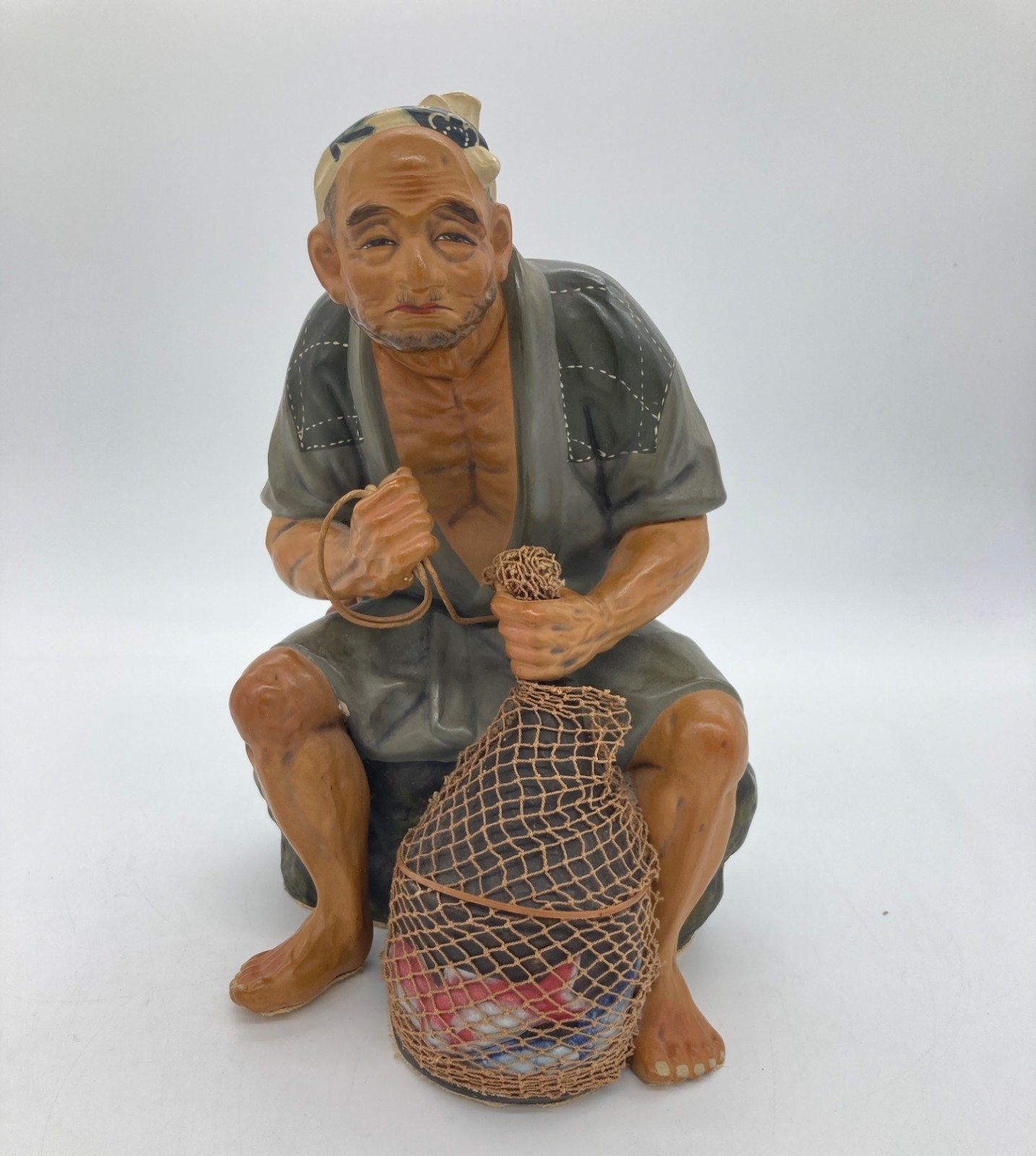 Vintage Japanese Fisherman Figurine With Netted Basket