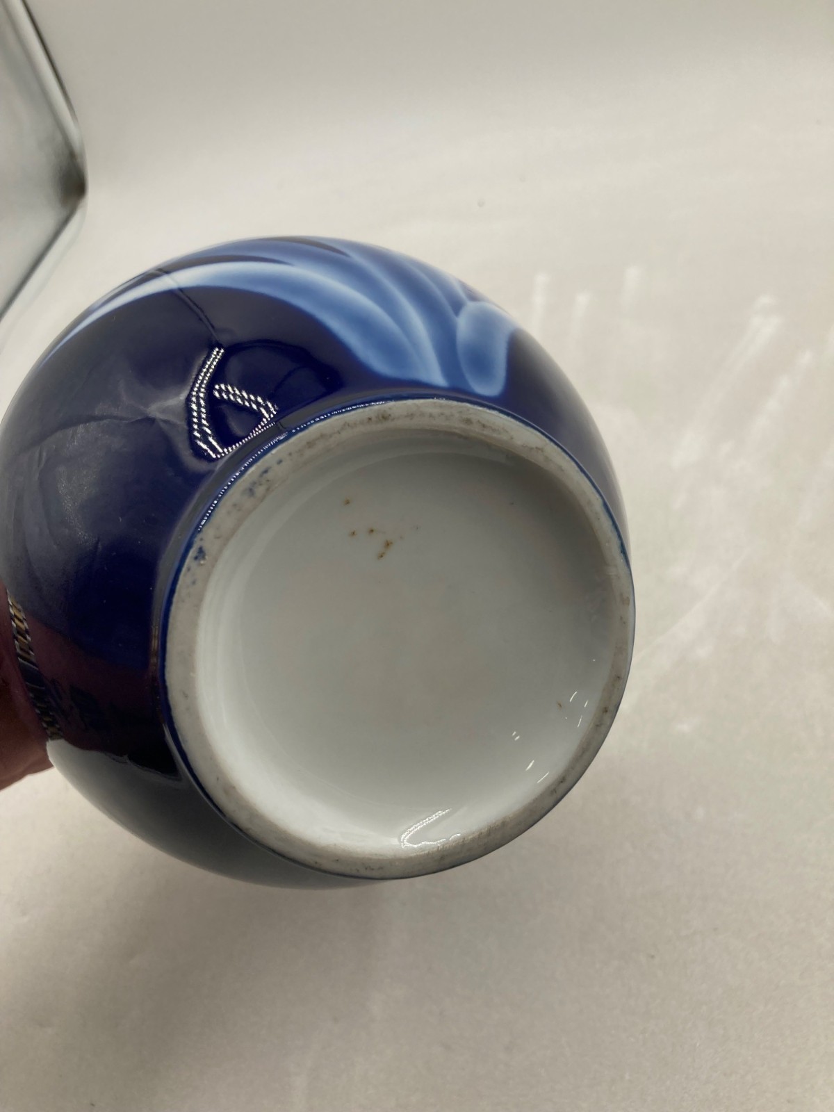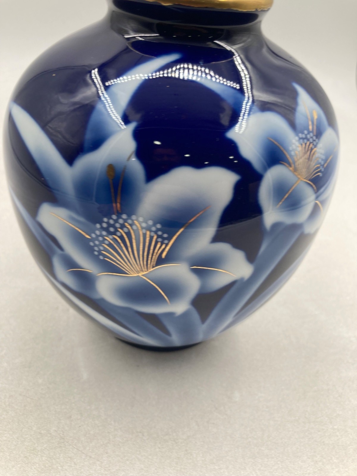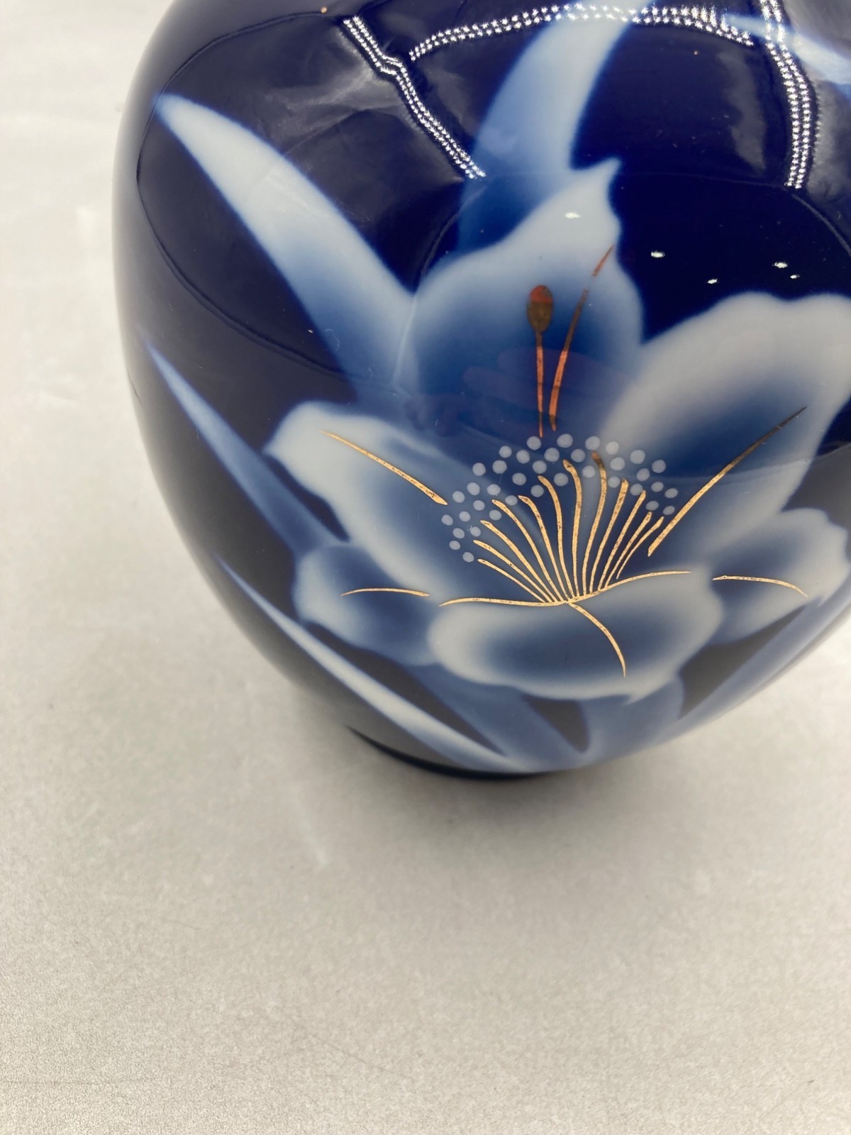 VINTAGE JAPANESE PORCELAIN BLUE FLOWER VASE 8.5IN