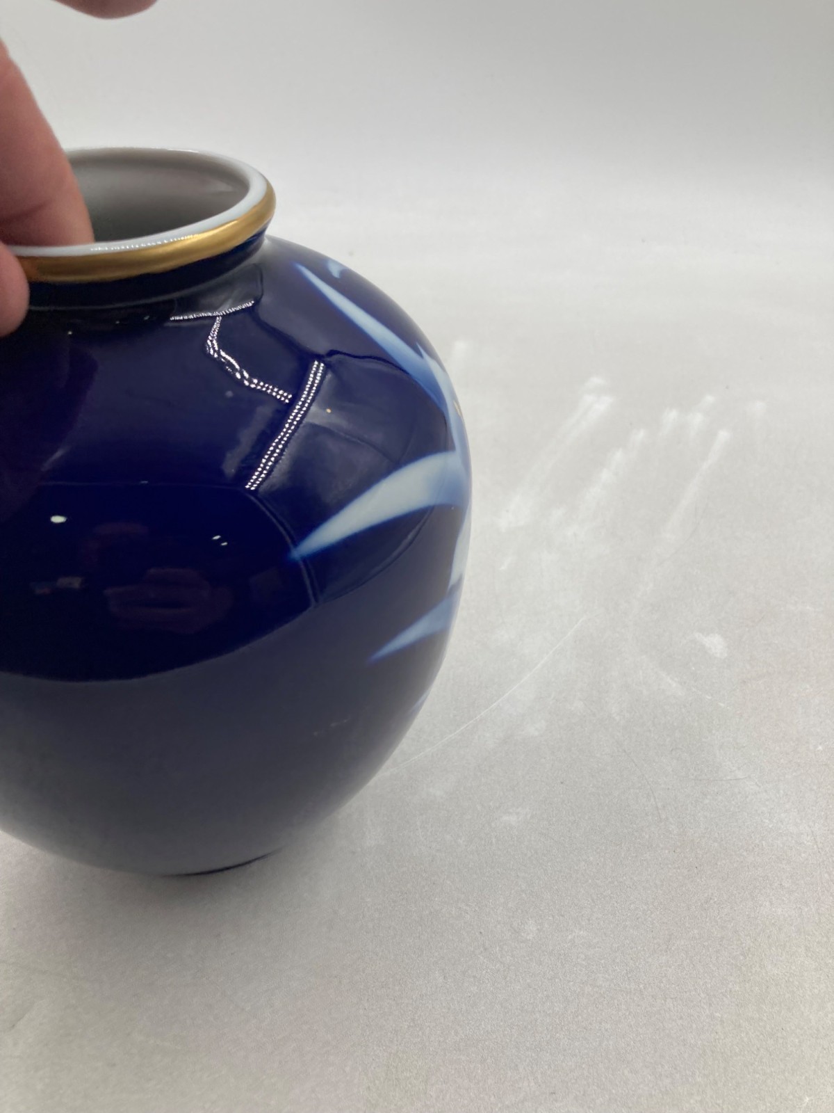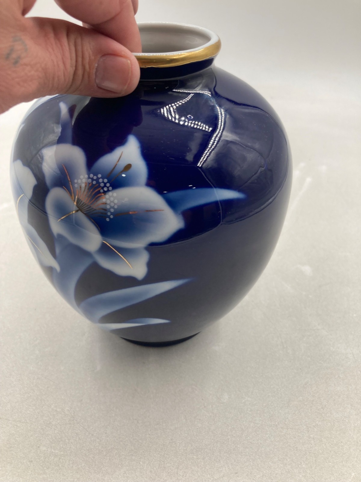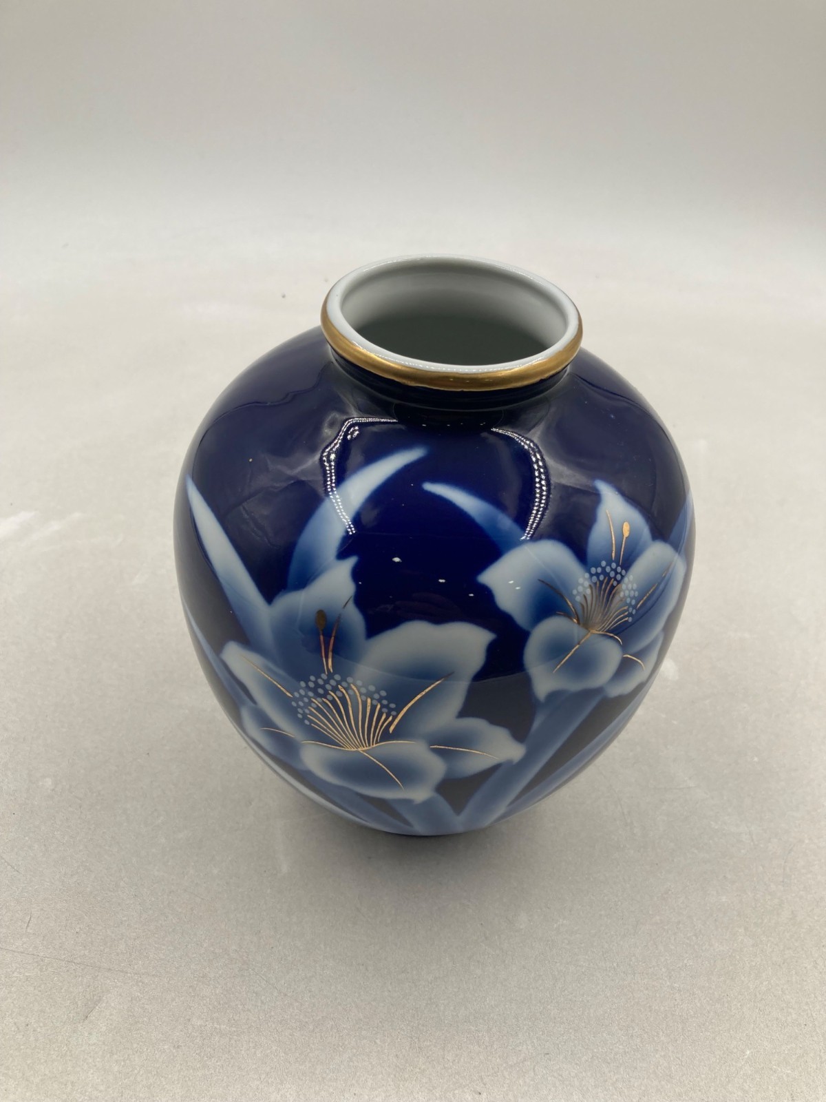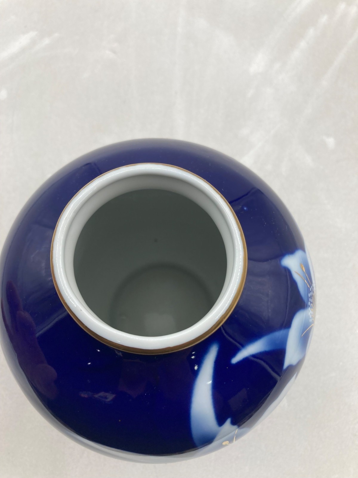 VINTAGE JAPANESE PORCELAIN BLUE FLOWER VASE 8.5IN