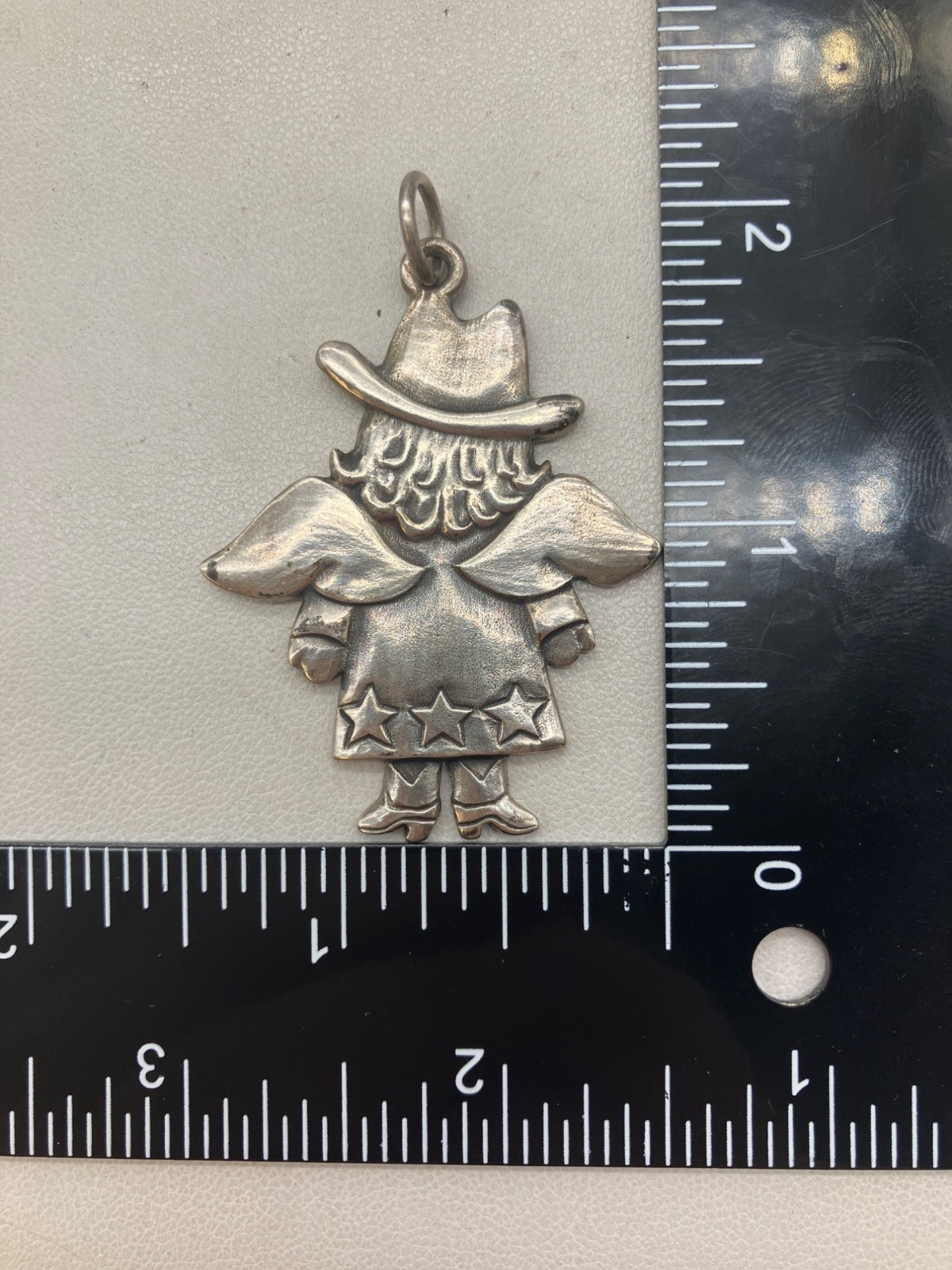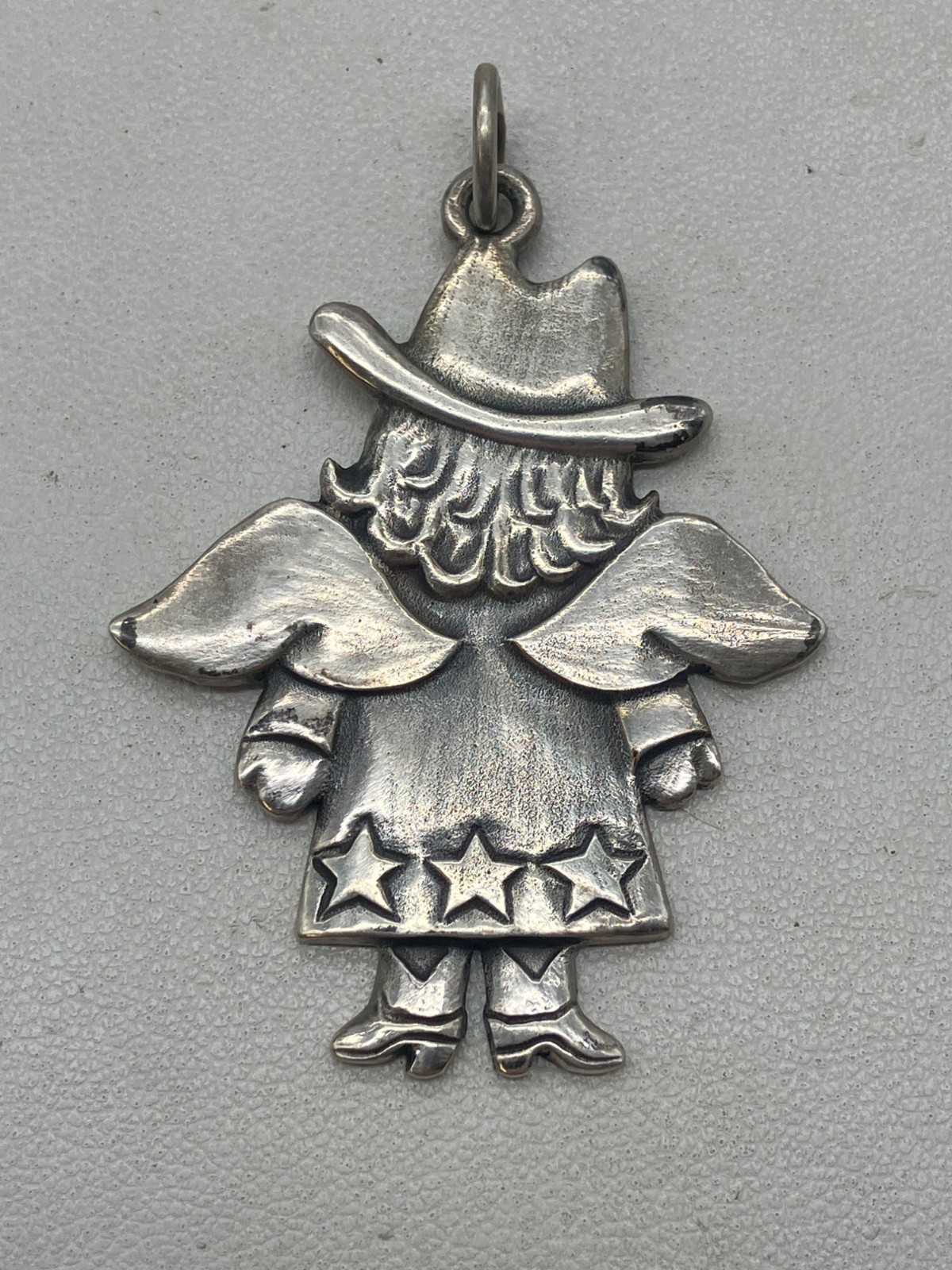 Vintage JEEP COLLINS Sterling Silver Cowgirl Angel Pendant - 13.7g