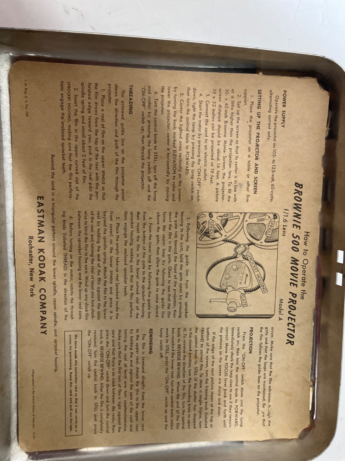 Vintage Kodak Brownie 500 8mm Film Projector Model A f/1.6 Lens
