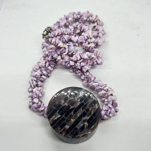 Vintage Lavender Chip Shell Bib Necklace Mother Of Pearl 22” Estate Jewelry