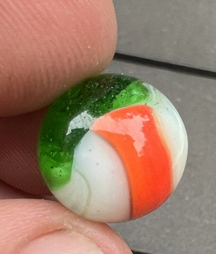 Vintage M.F. CHRISTENSEN & Son / Akro Agate Marble .55” Green White Orange