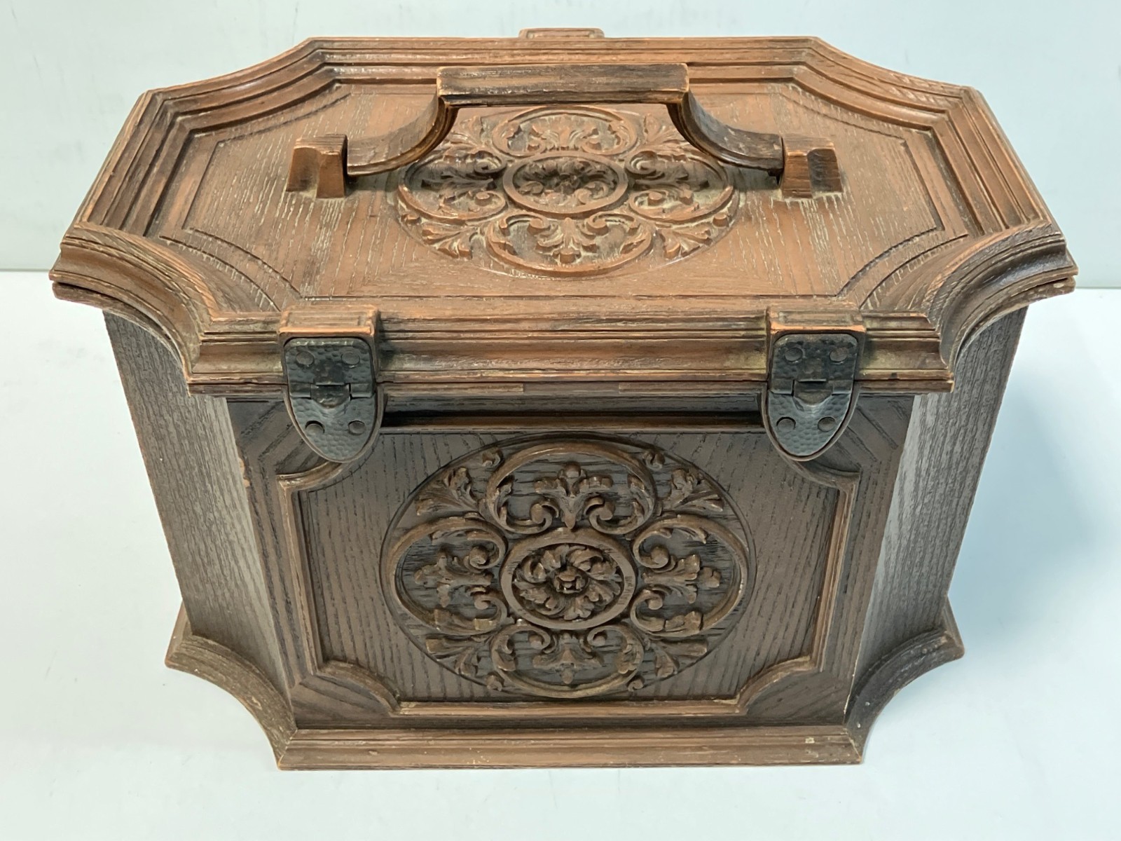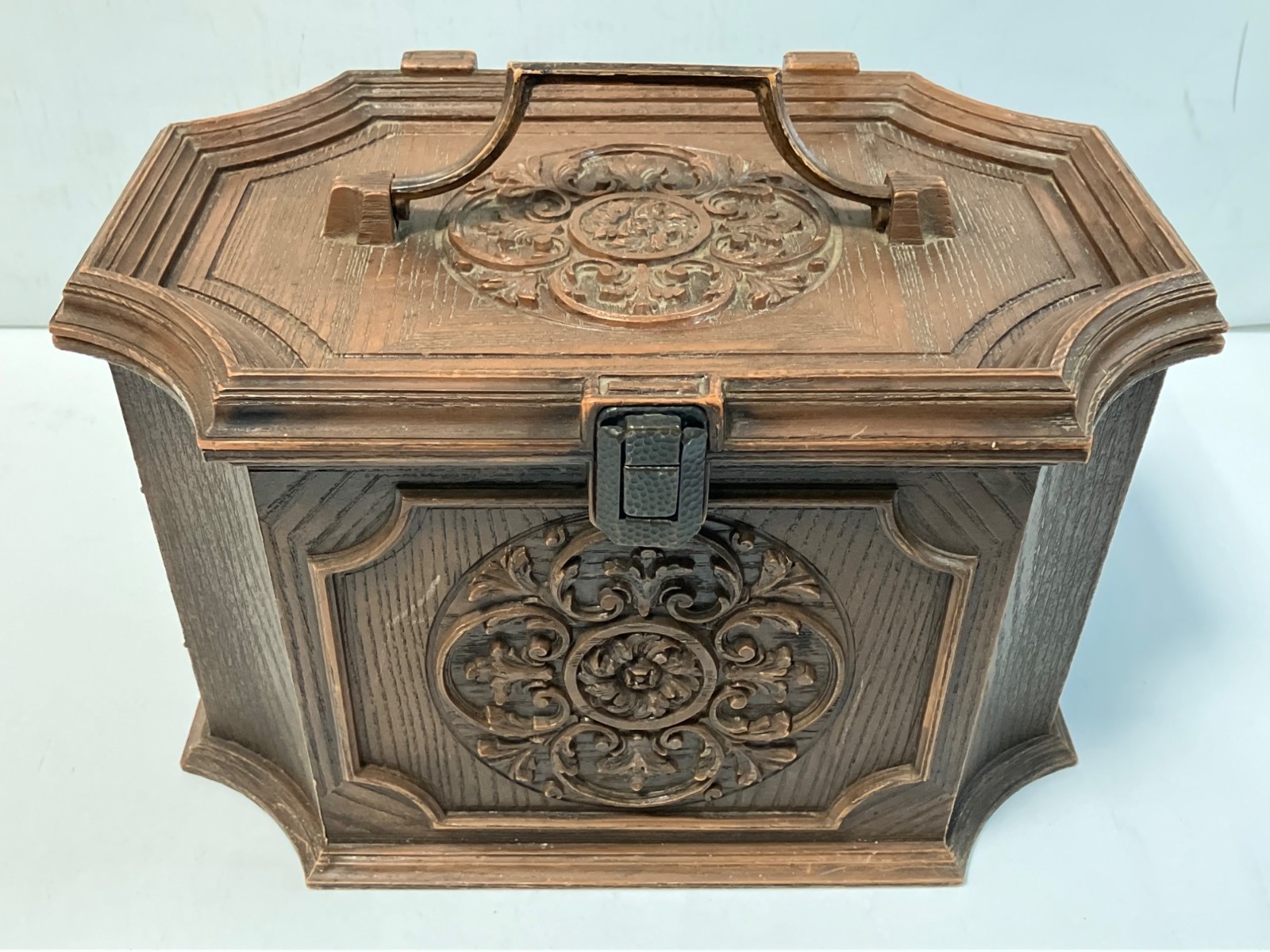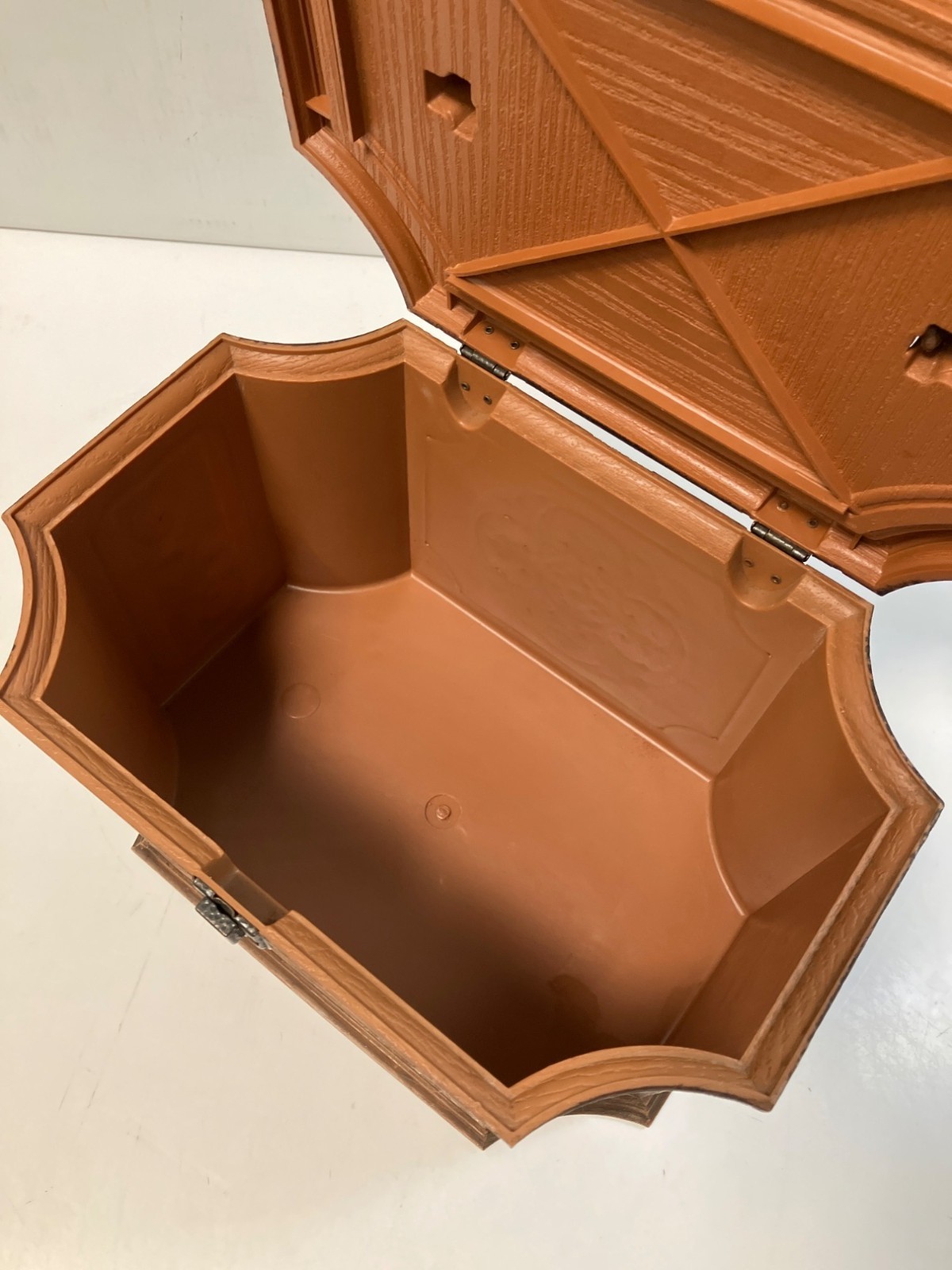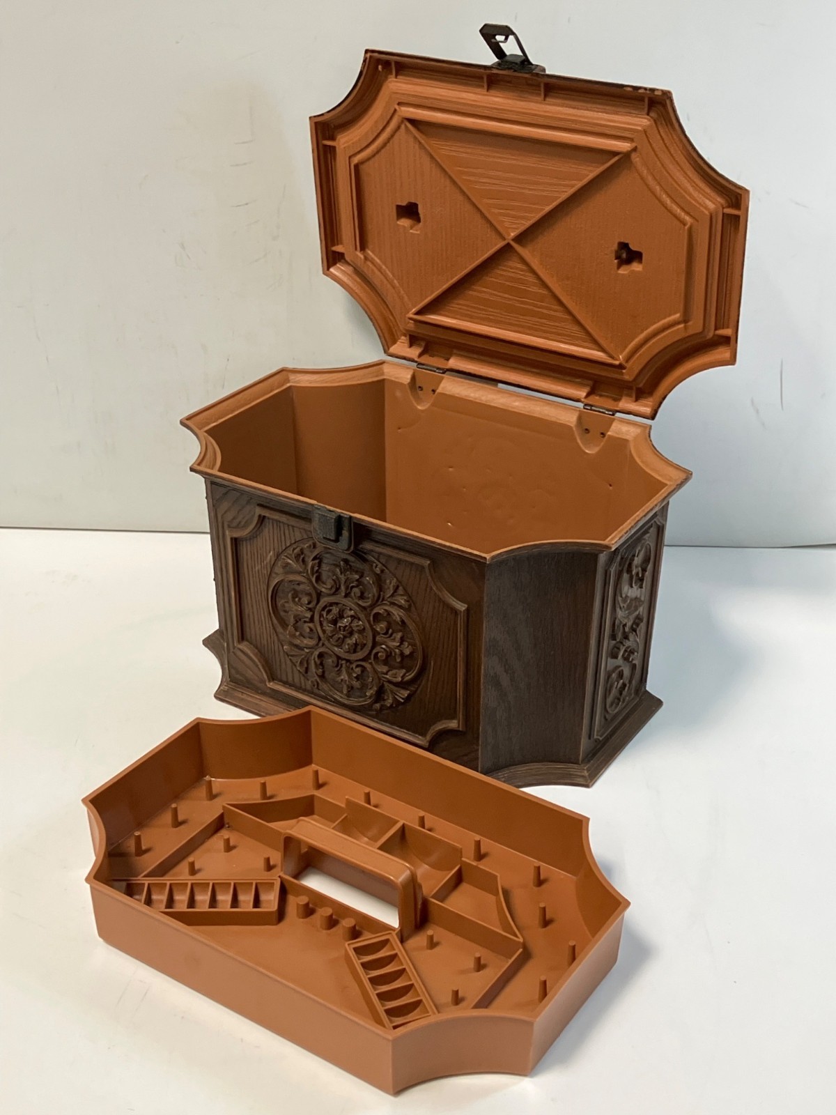Vintage Max Klein Sewing Box Hard Plastic With Accessories Tray Faux Wood