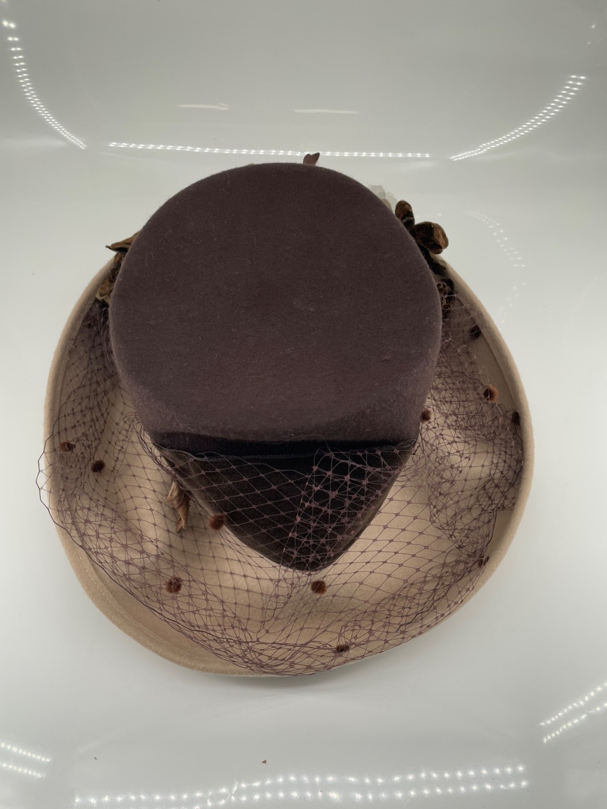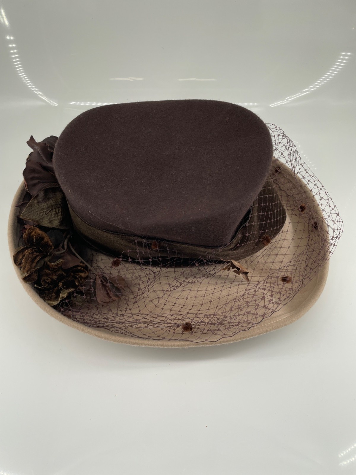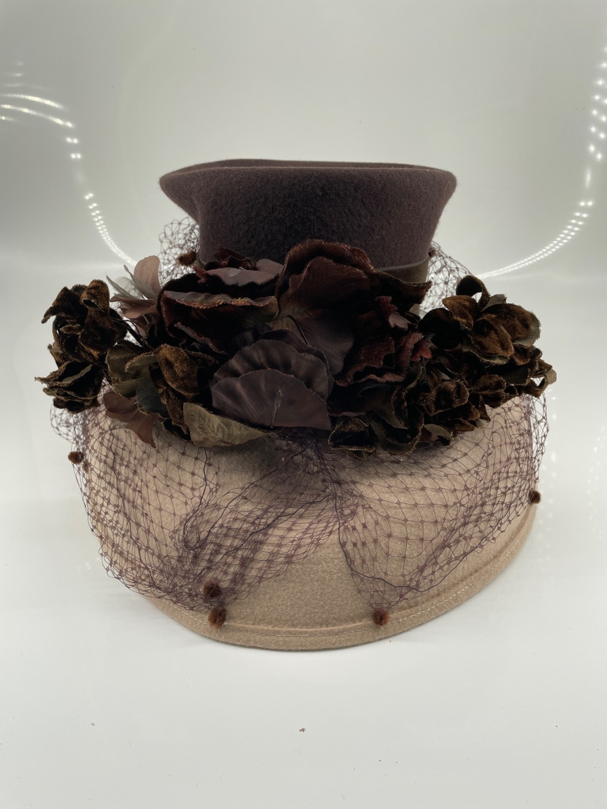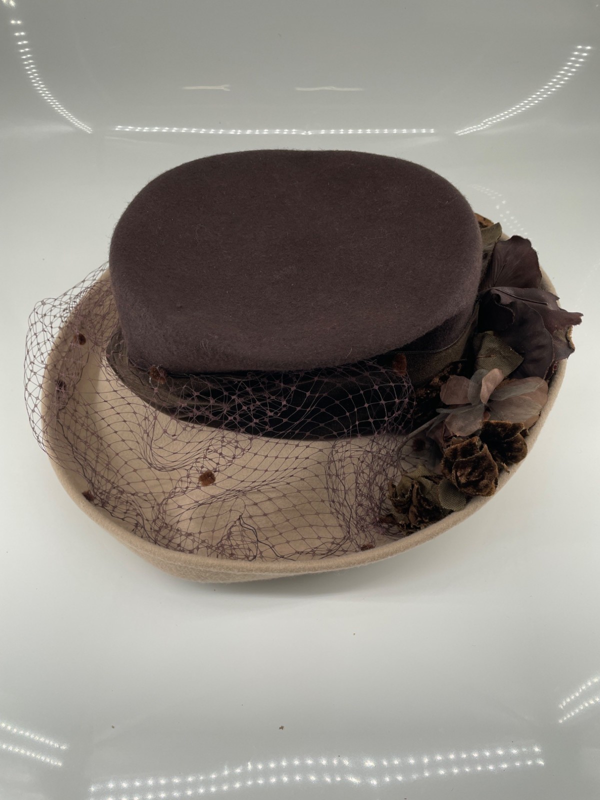 Vintage Michael Howard Womens Wool Brown Veil Hat With Floral Accent NWT