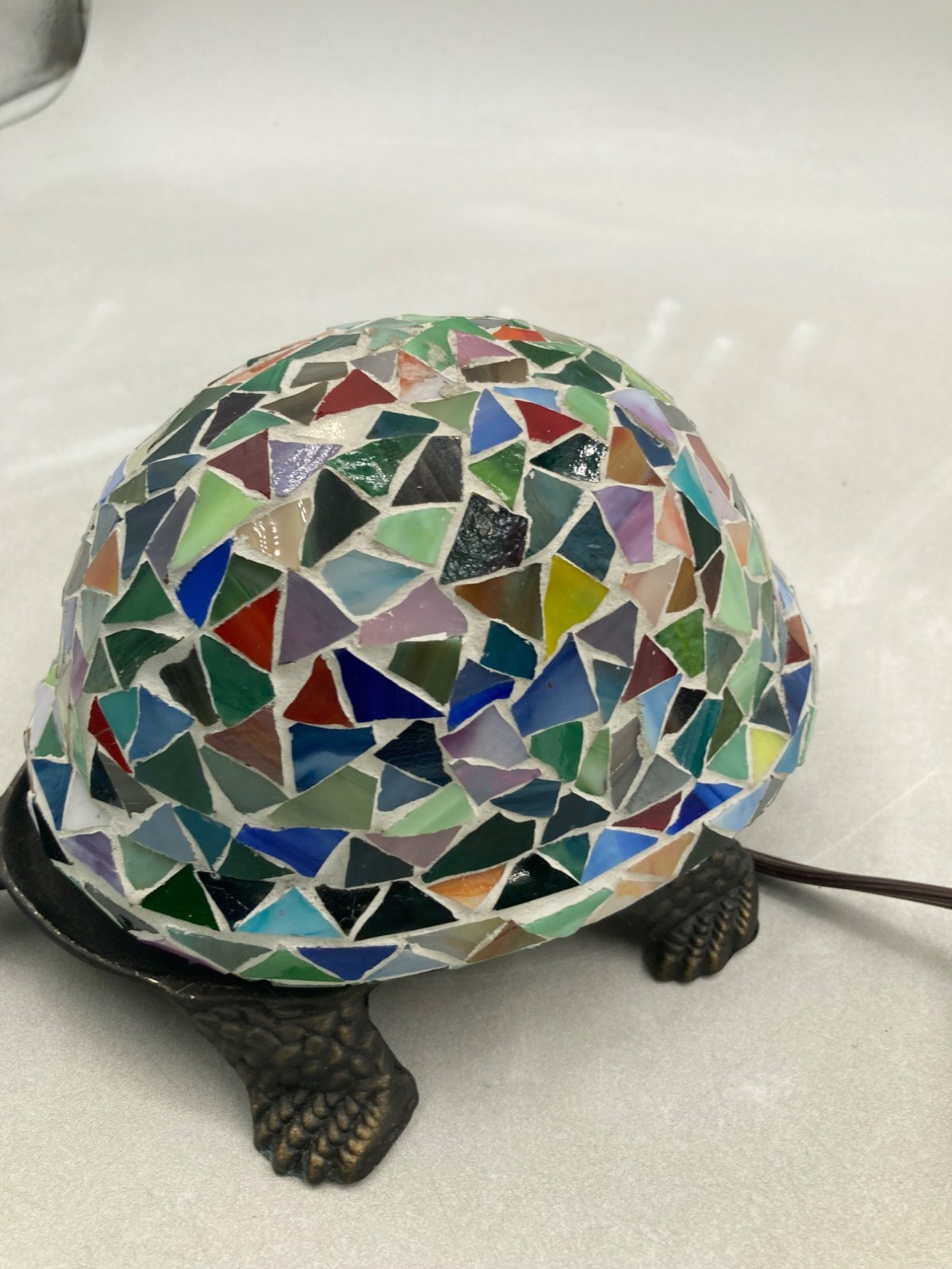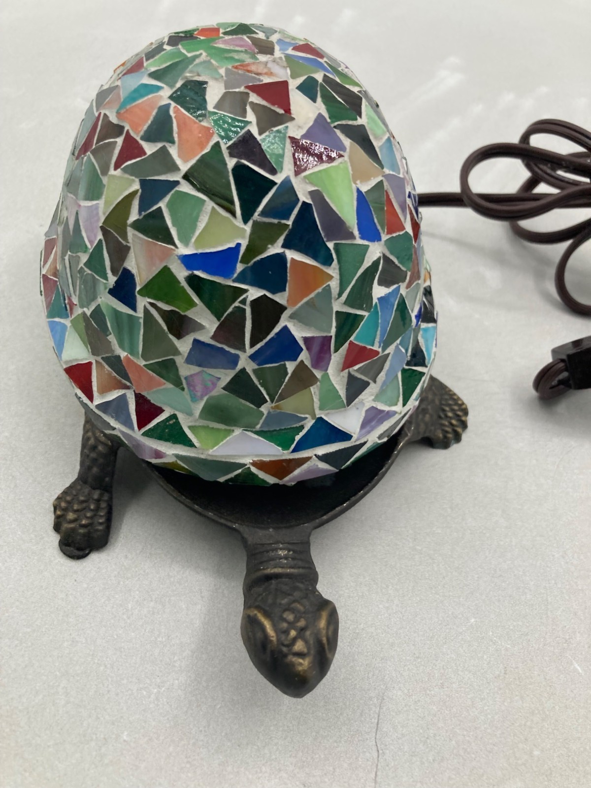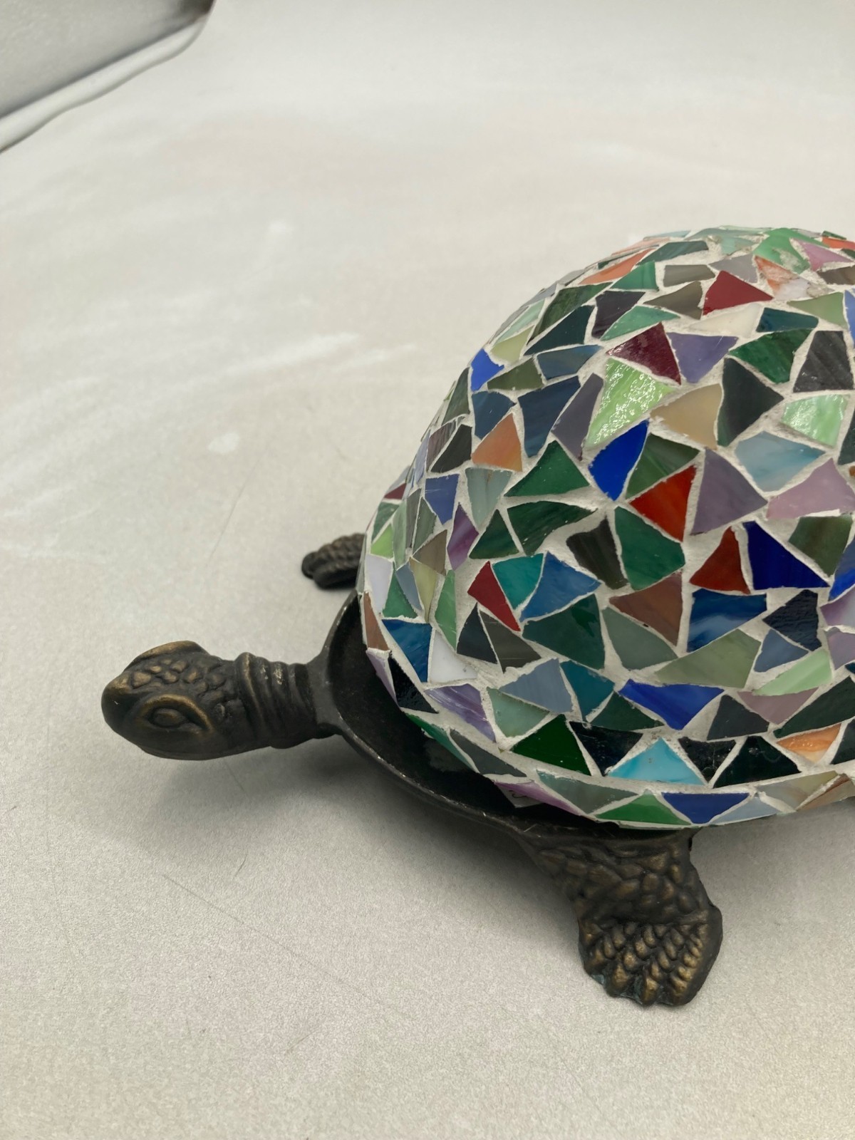 VINTAGE MOSAIC STANNED GLASS TURTLE LAMP 9IN LONG 5IN TALL BEAUTIFUL