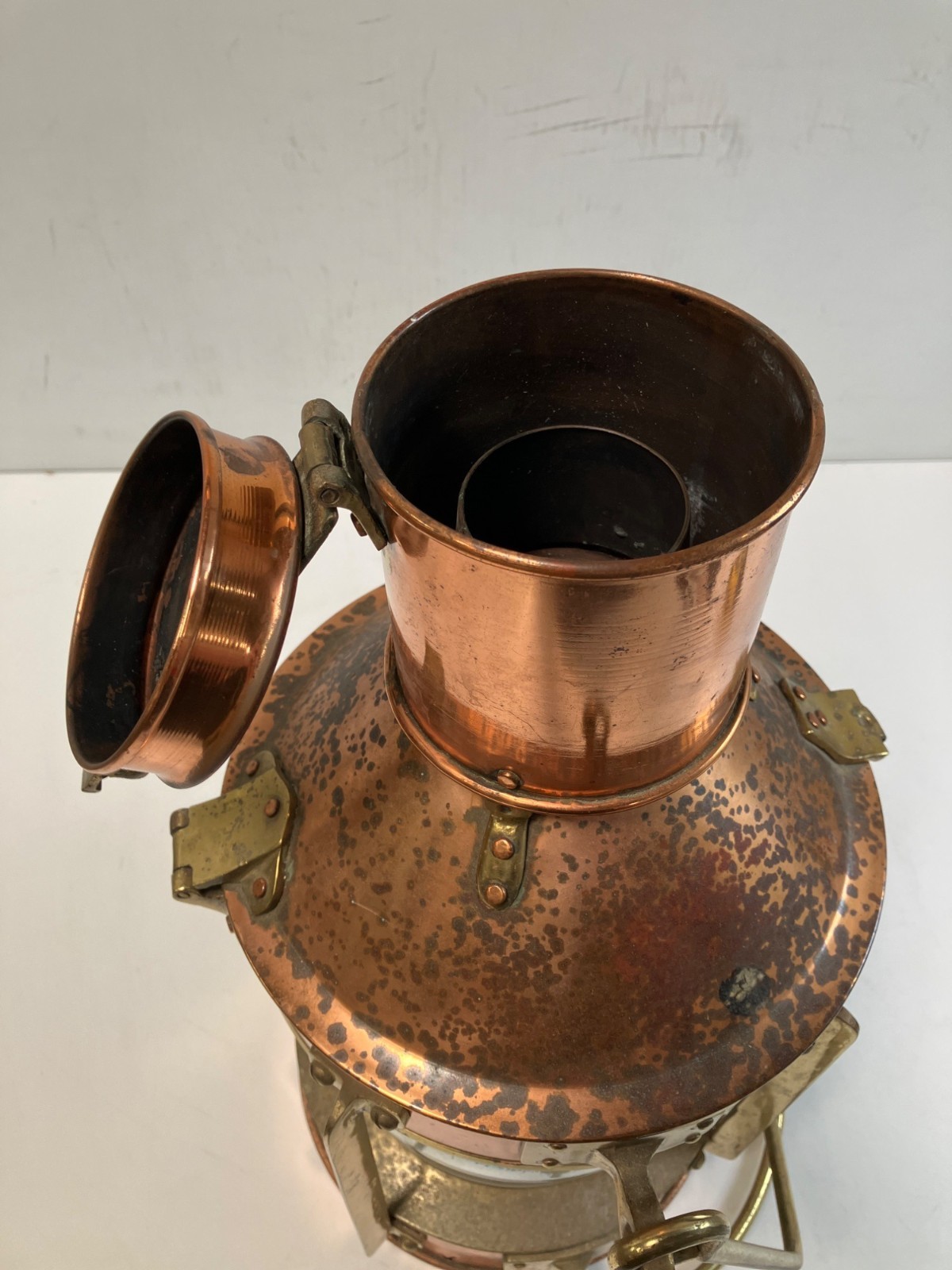 Vintage Nautical Ship Lantern Oil Lamp Brass Copper As-Is Latch is Broken