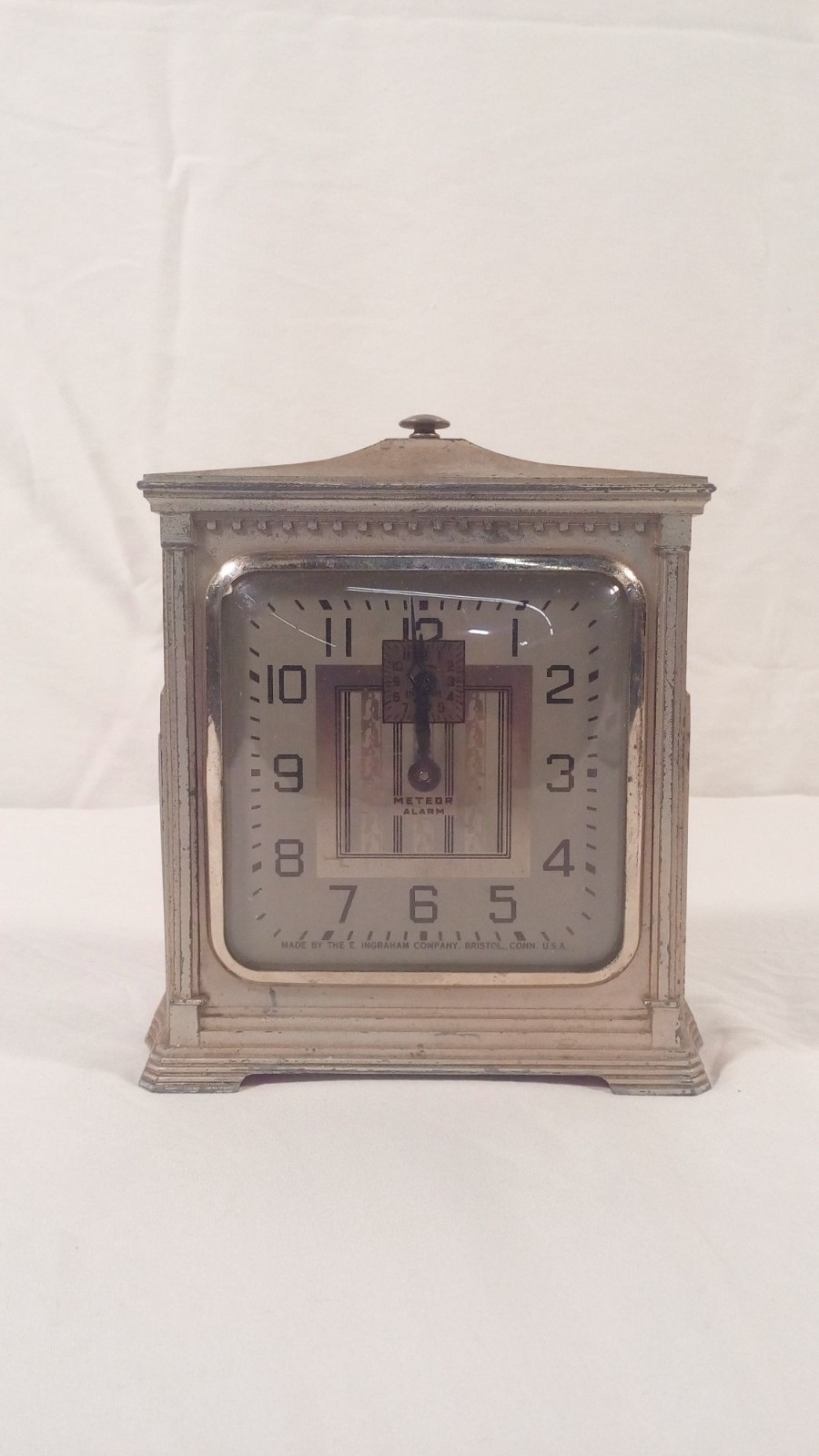 Vintage New Haven Art Deco Metal Alarm Mantel Clock