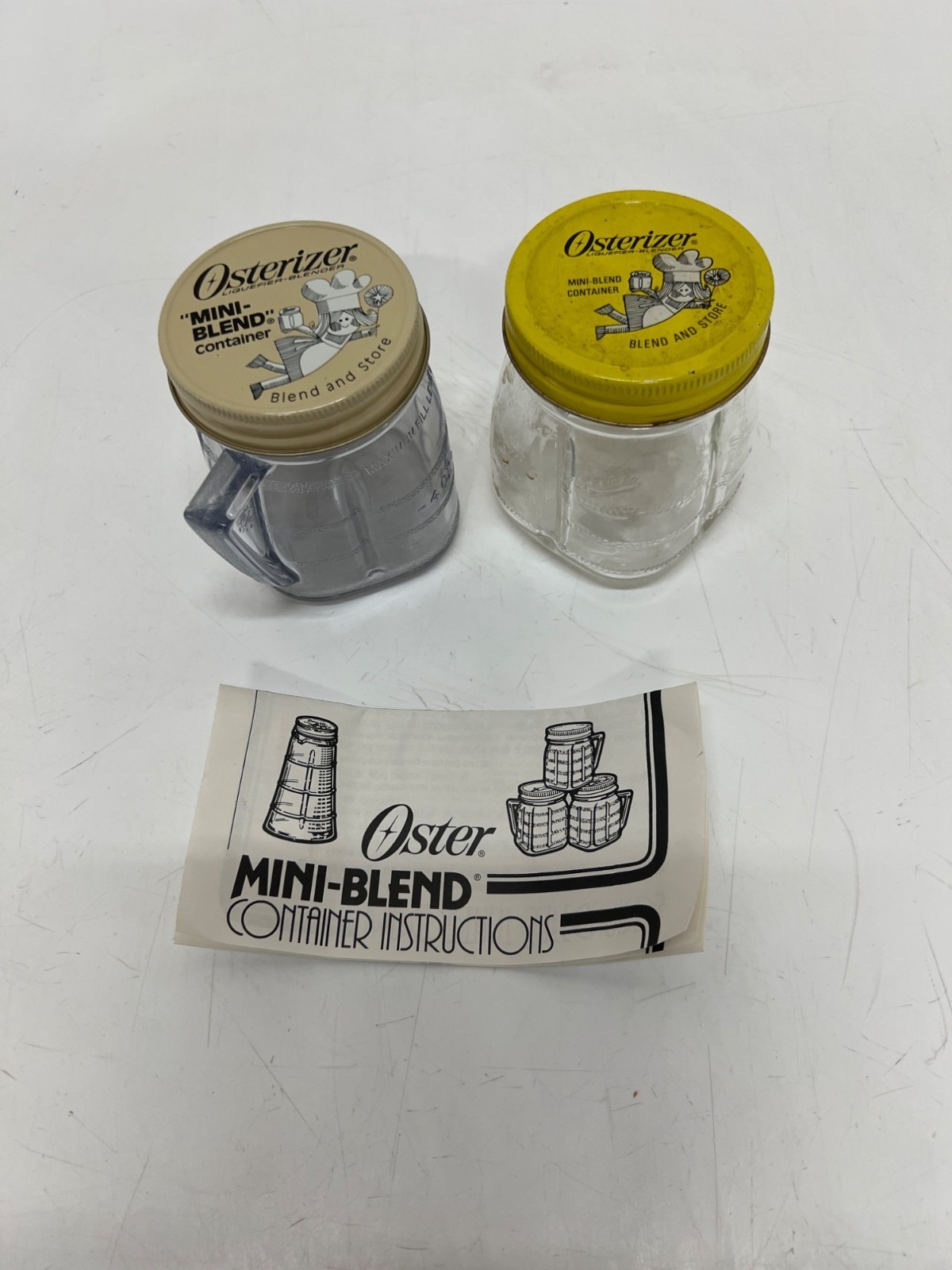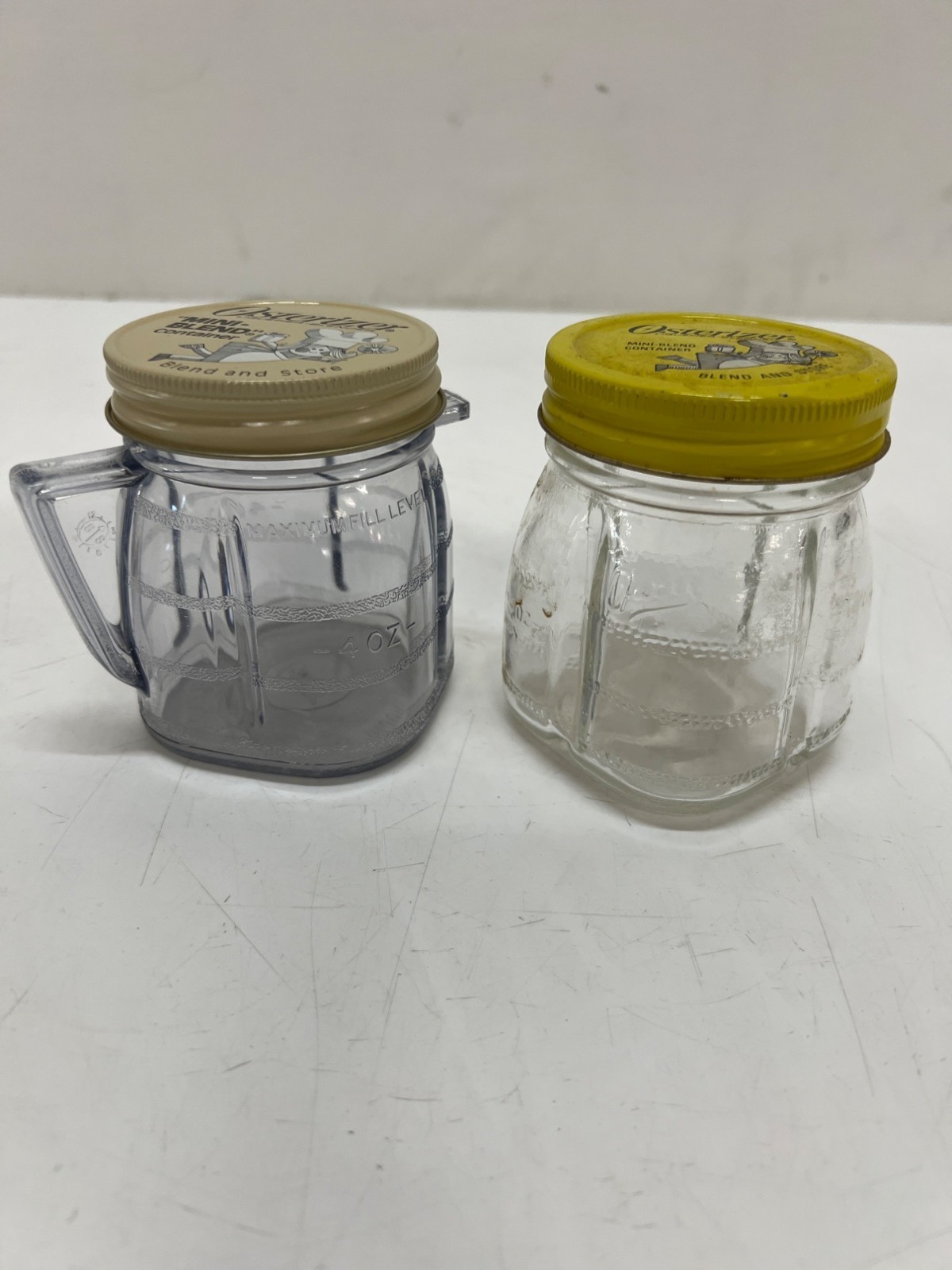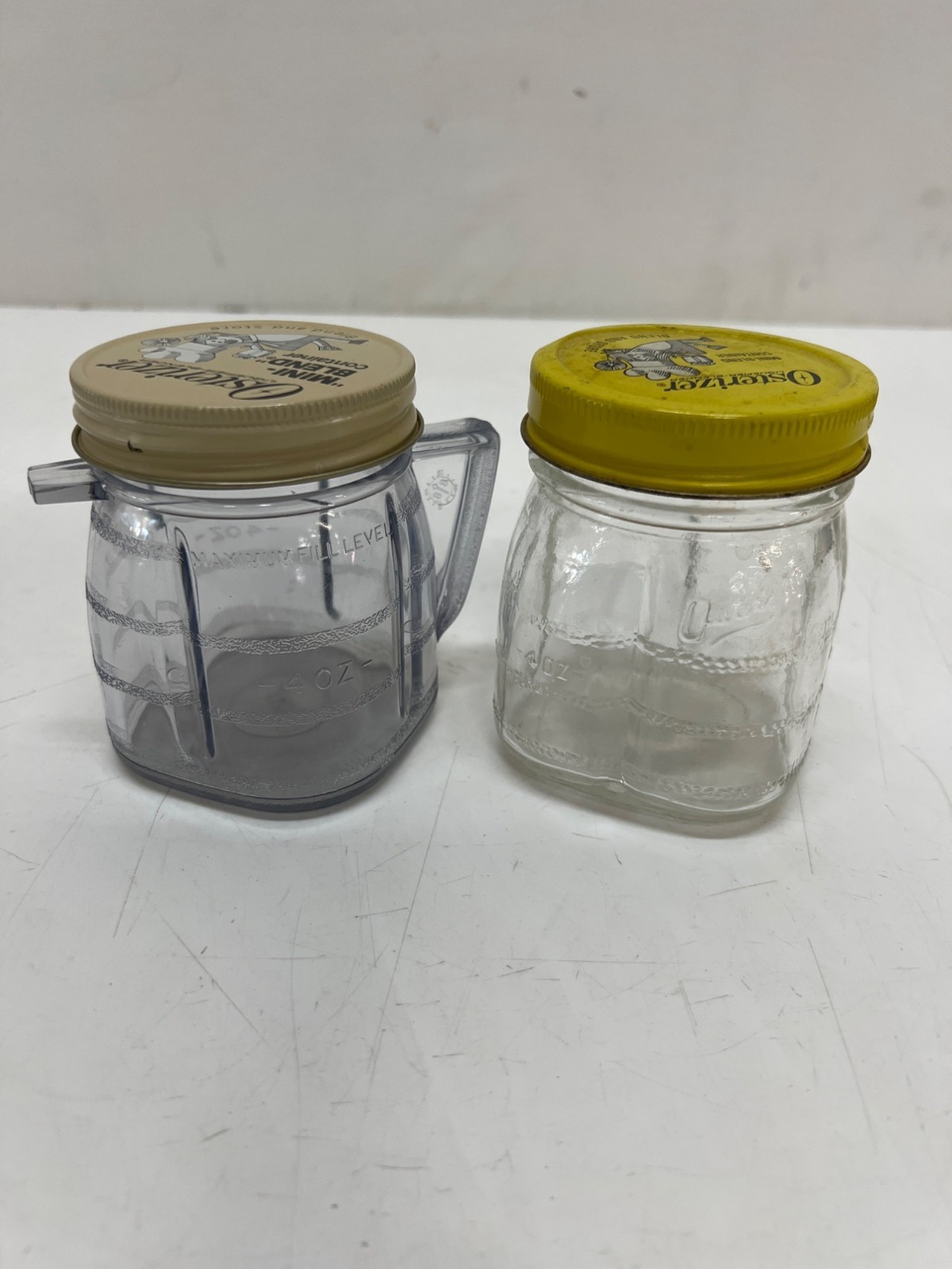 Vintage Osterizer Mini Blend Glass and Plastic Containers Blend And Store 8 Oz.