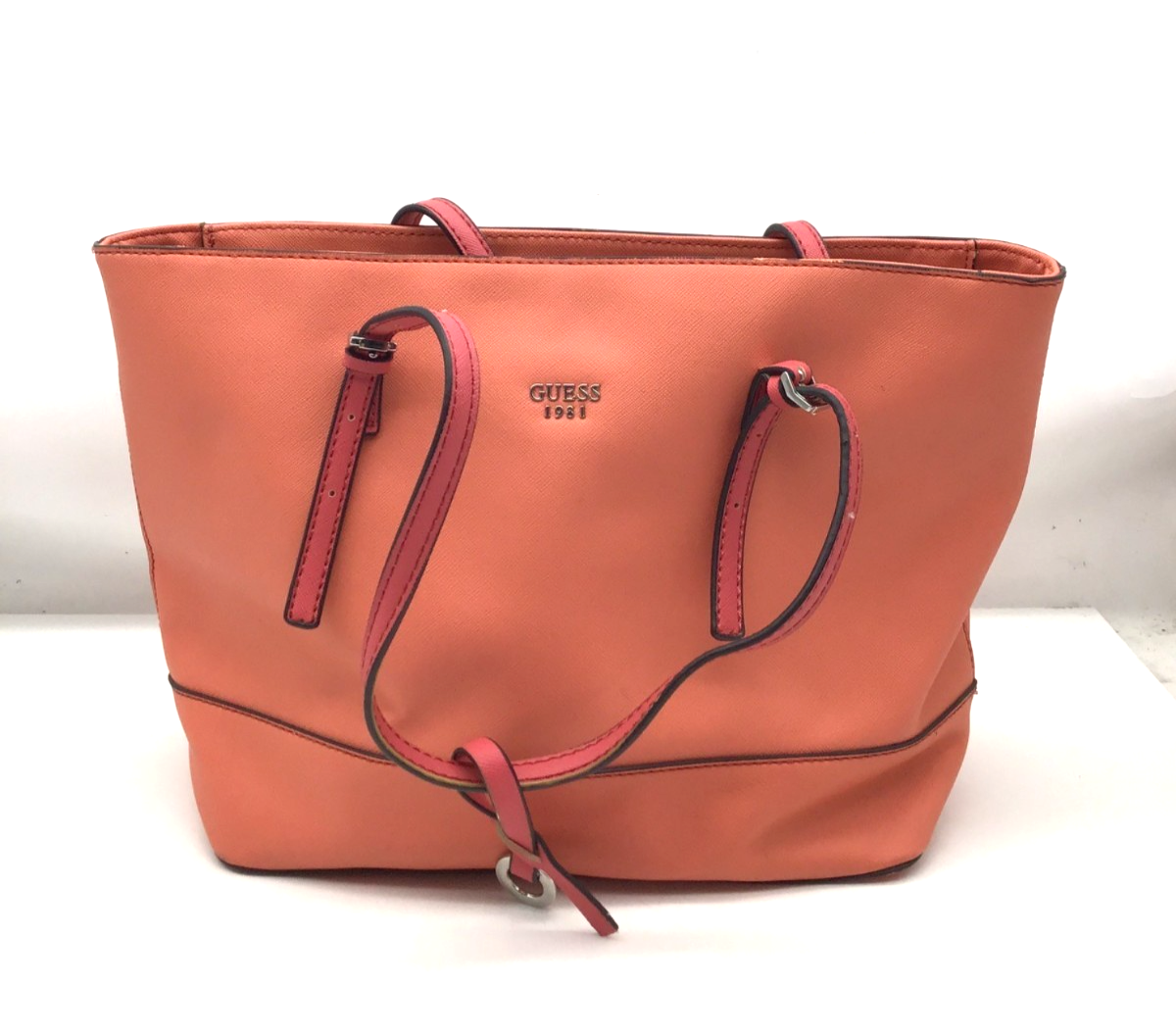 Vintage Pink Orange Guess PVC Purse Tote Summer Hand Bag