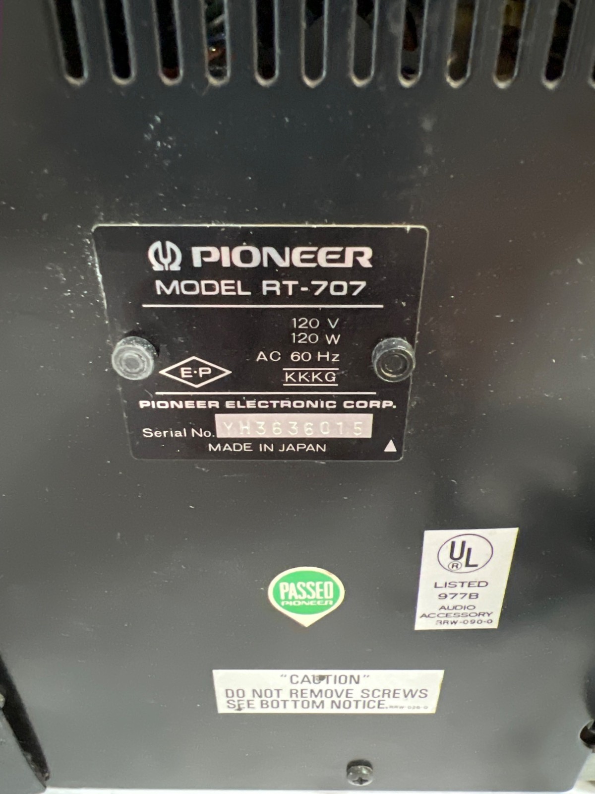 Vintage Pioneer Reel to Reel Tape Deck RT-707 - For Parts or Repair - READ