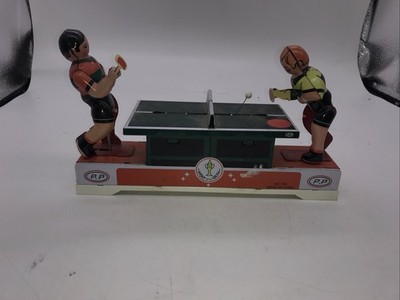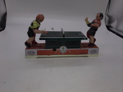 Vintage Playing Ping Pong Match Game Wind Up Tin Toy MS 358 With Box Key Works
