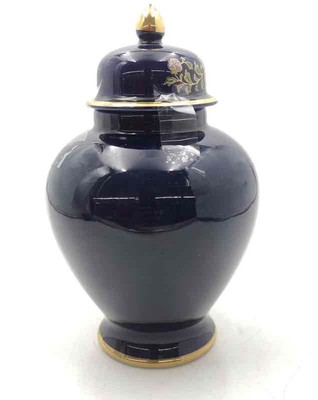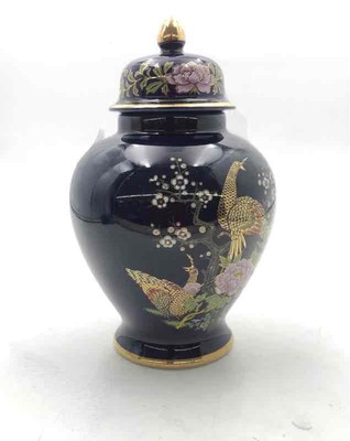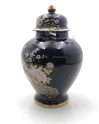 Vintage Porcelain Japanese Blue Peacock Floral Collectible Ginger Jar With Lid