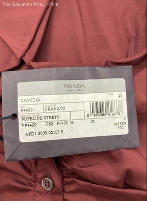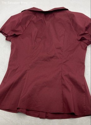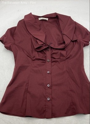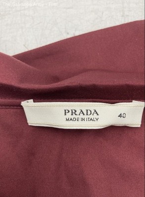 Vintage Prada 2009 Womens Burgundy Short Sleeve Button Front Blouse Top Size 40