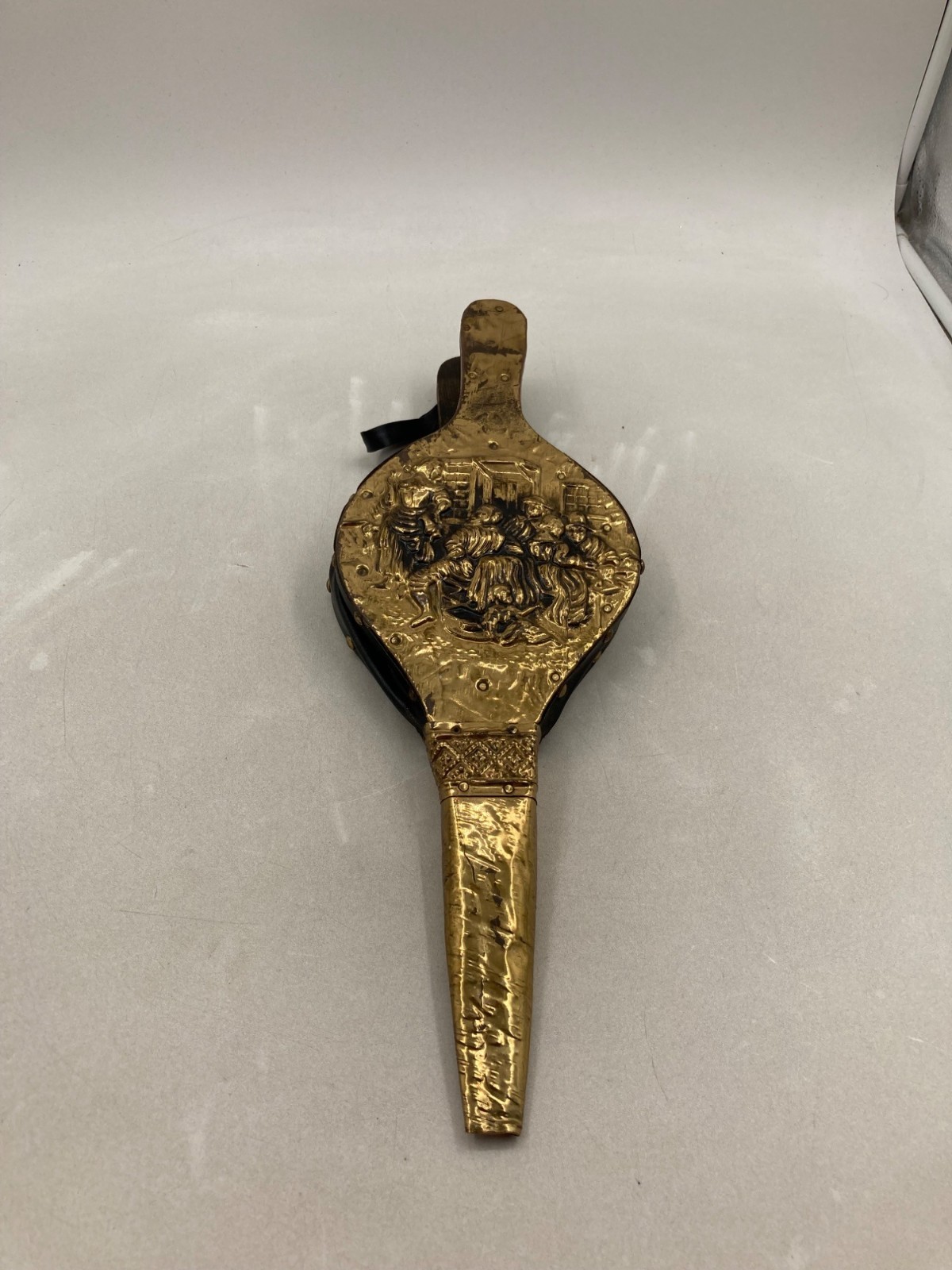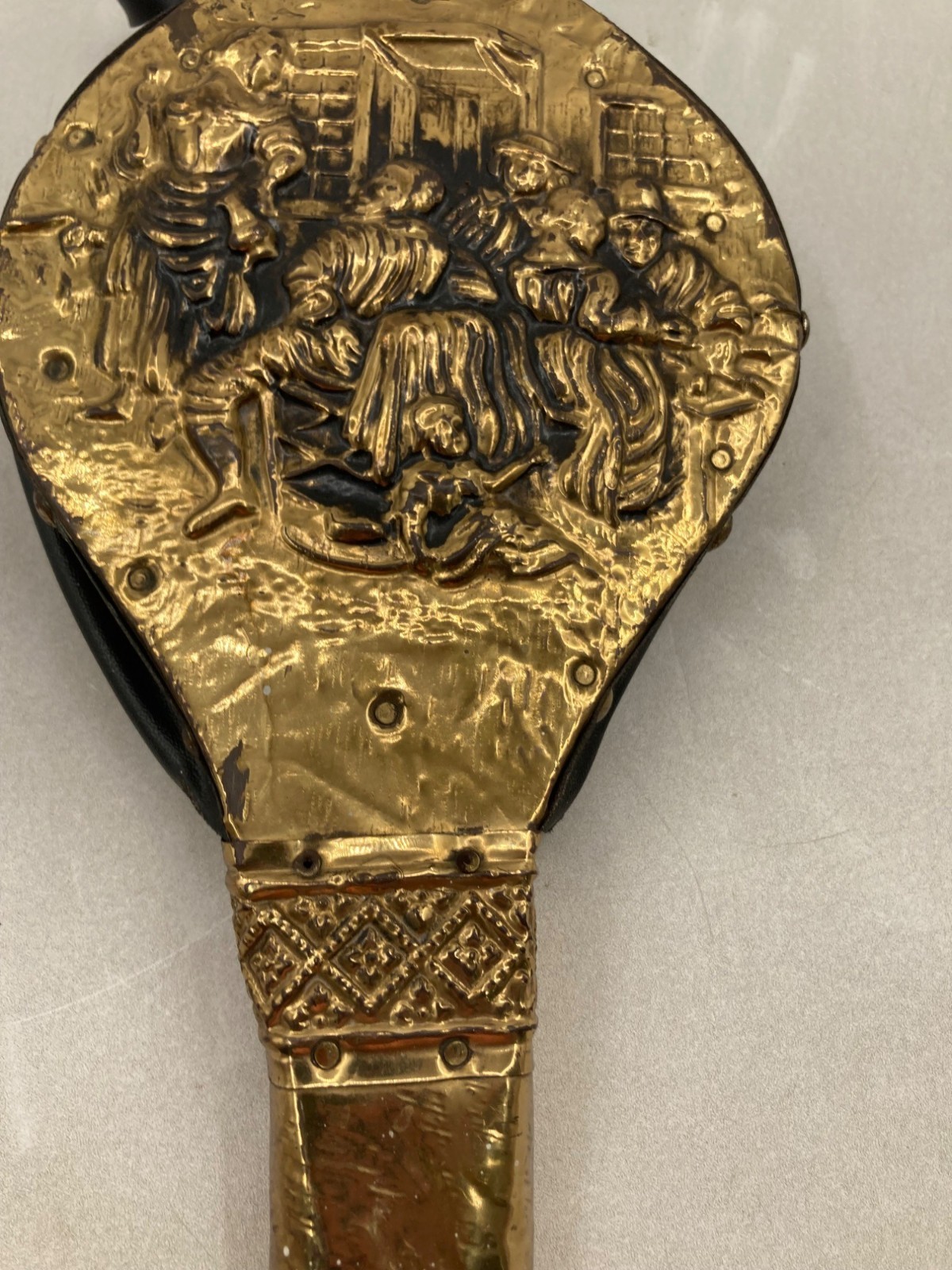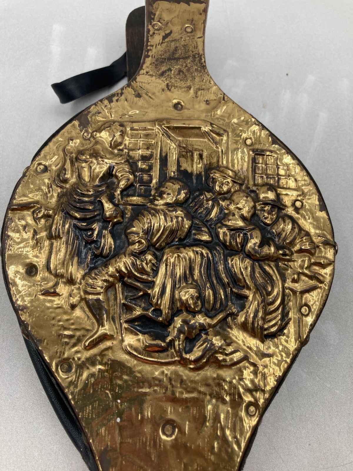 VINTAGE PUB SCENE VICTORIAN WOOD AND BRASS FIRE BELLOWS