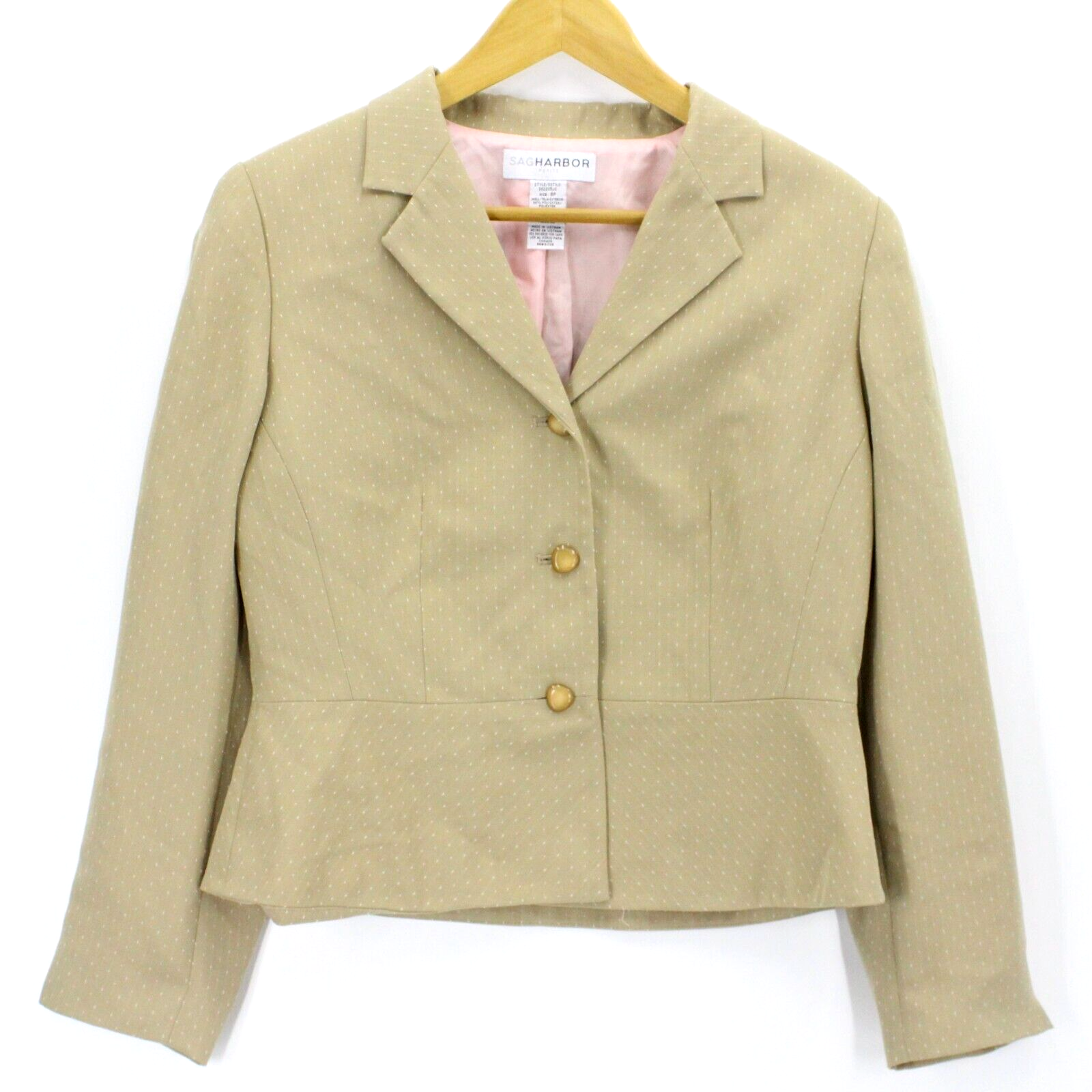 Vintage Sag Harbor Women's Petites Retro Beige Three Button Front Blazer Size 8P