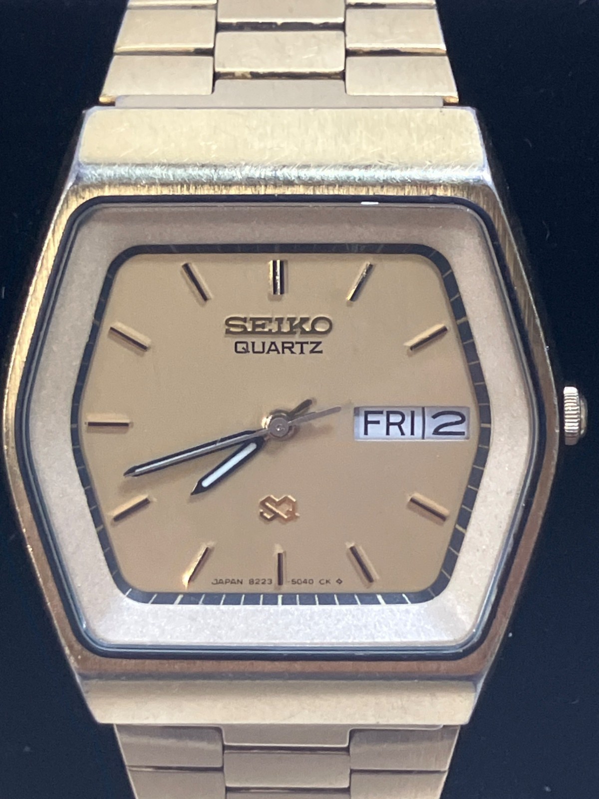 Vintage Seiko (8223-5049) Mens Gold Toned Hexagonal Wristwatch