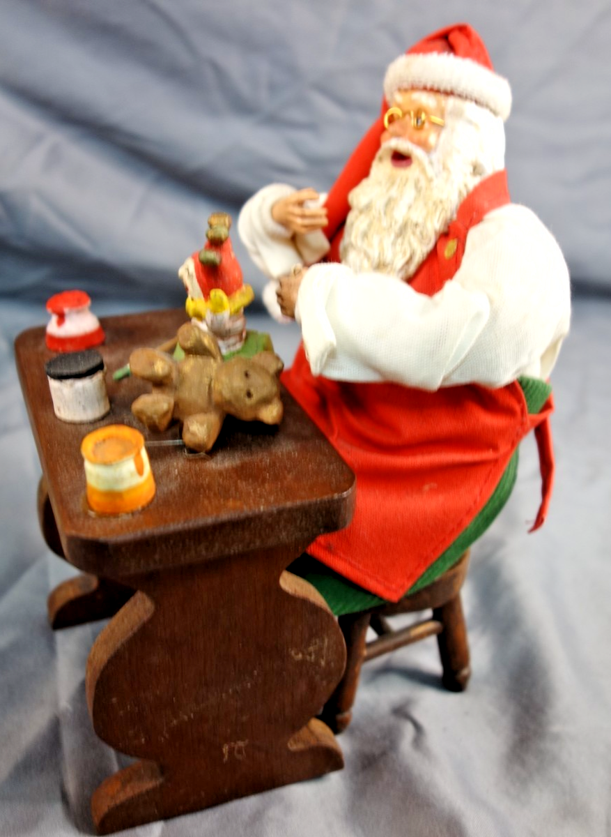 Vintage Silvestri Paper Mache Santa Claus At Christmas Work Shop Bench