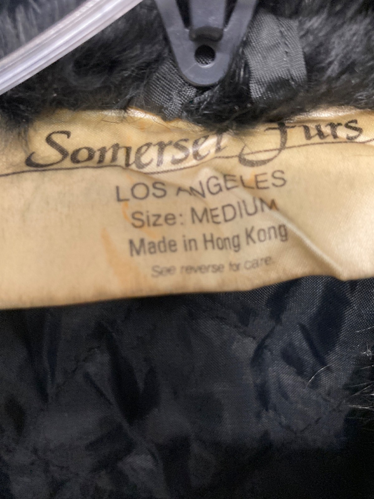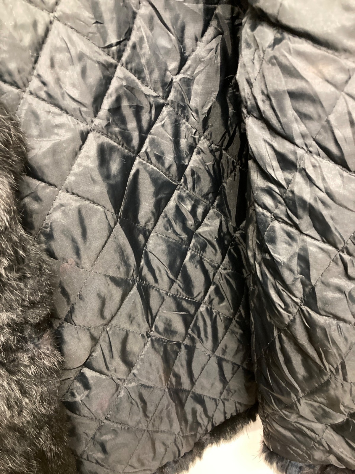 Vintage Somerset Furs Black Rabbit Fur Coat Medium Quilted Lining