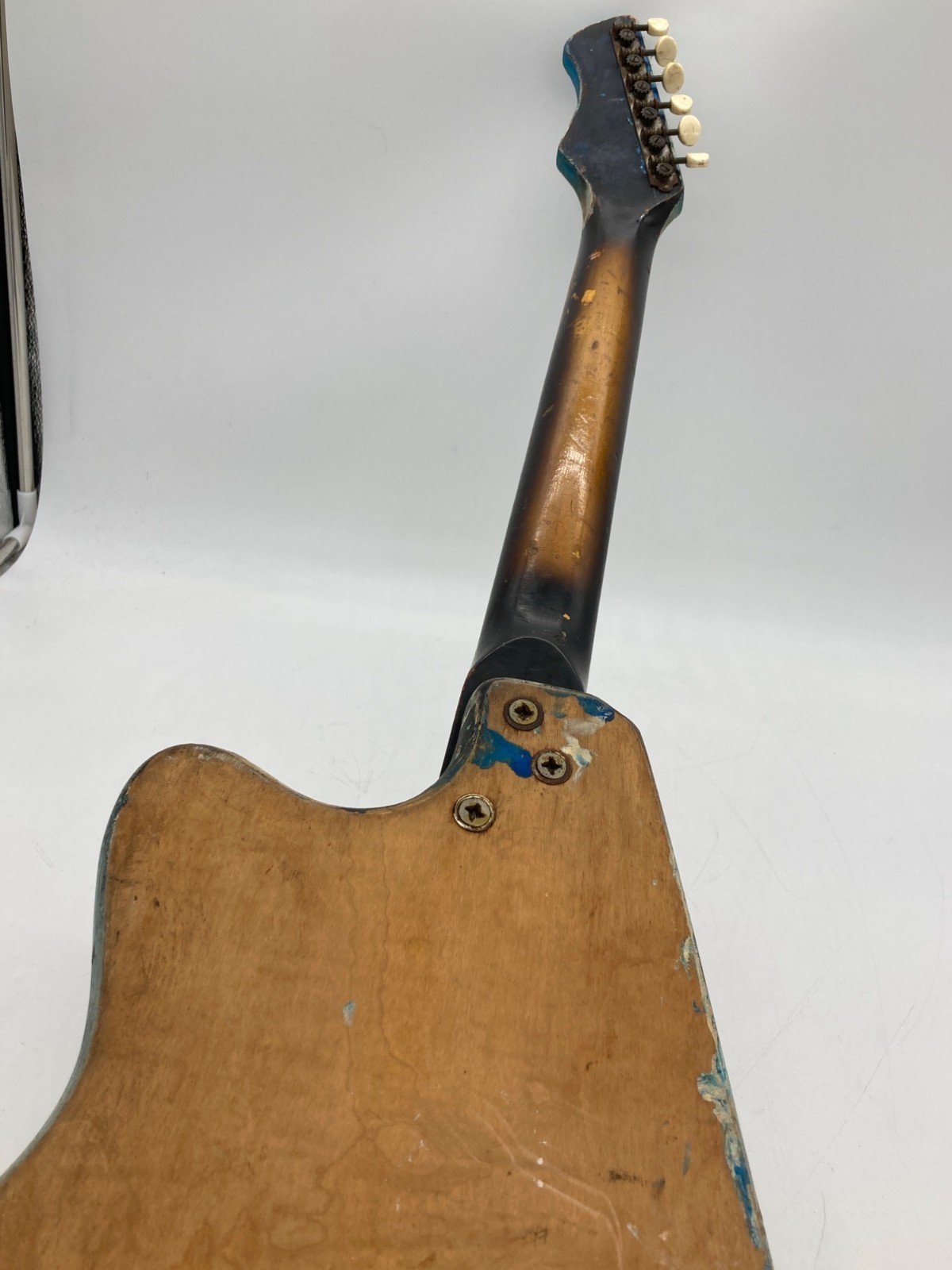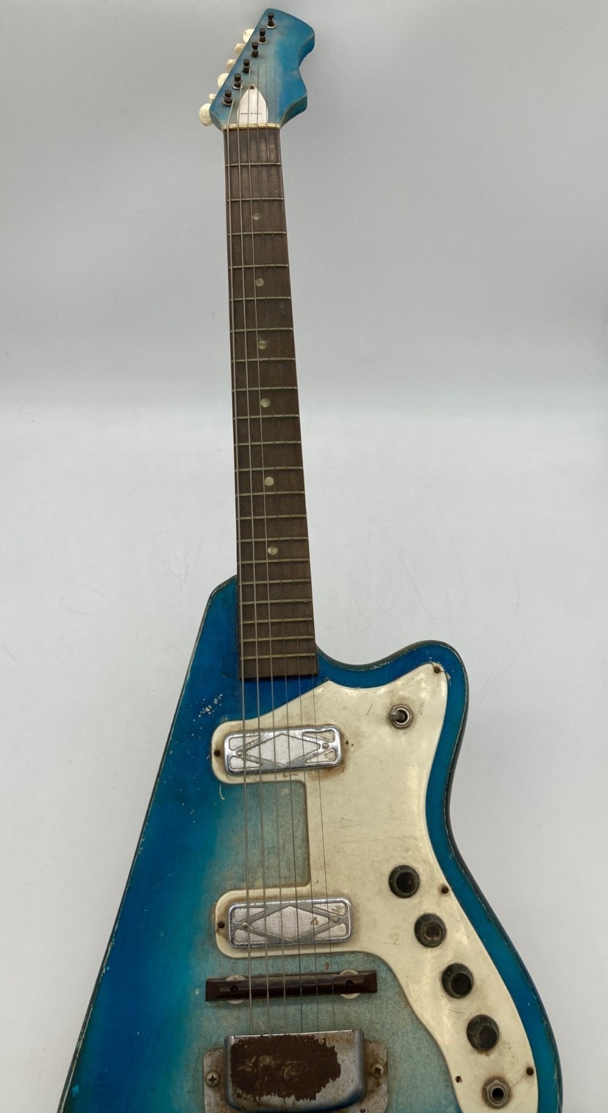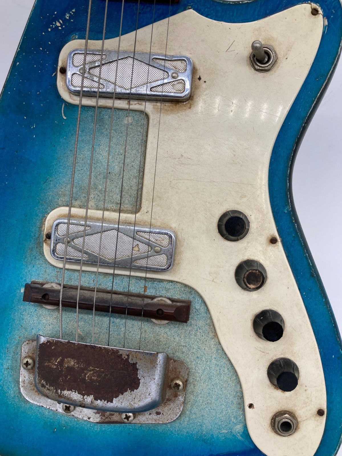 Vintage Teisco Electric Guitar Blue/White 1960s 6-String Solid Body Dual Pickups