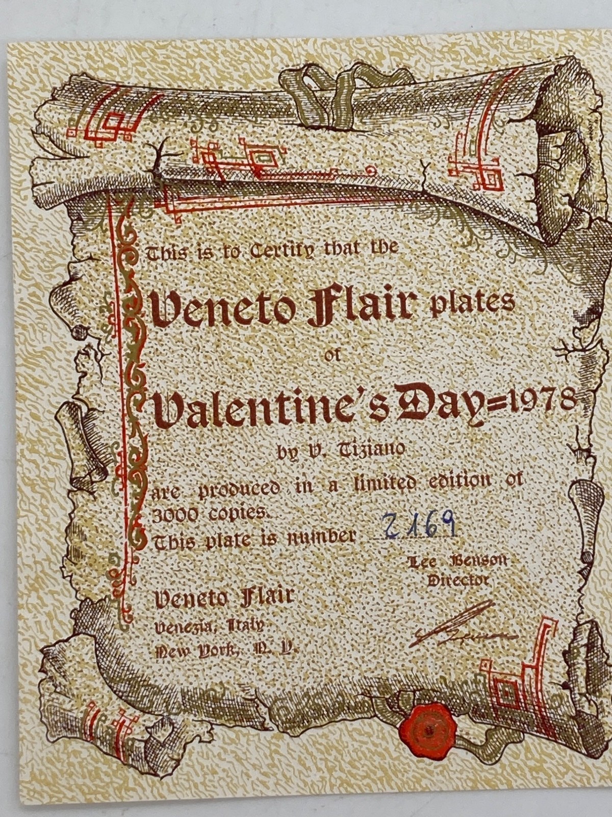 Vintage V Tiziano Veneto Flair Collectible Plate Valentines 1978 Limited Edition