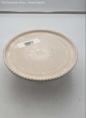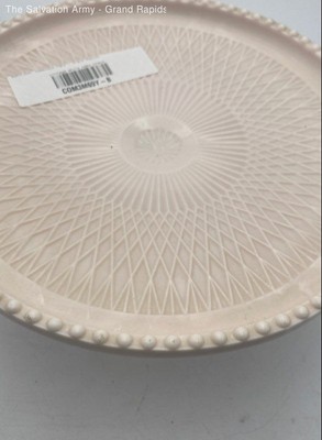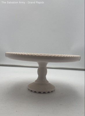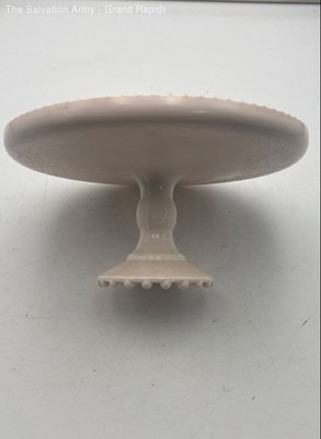Vintage White Milk Glass Beaded Edge Footed Serving Cake Stand