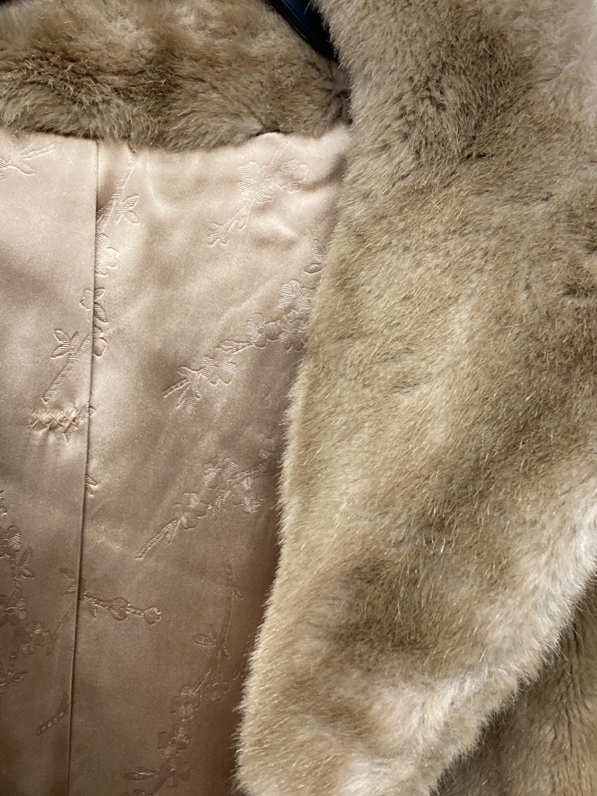 Vintage Womens Grandella Faux Fur Coat With Embroidered Lining