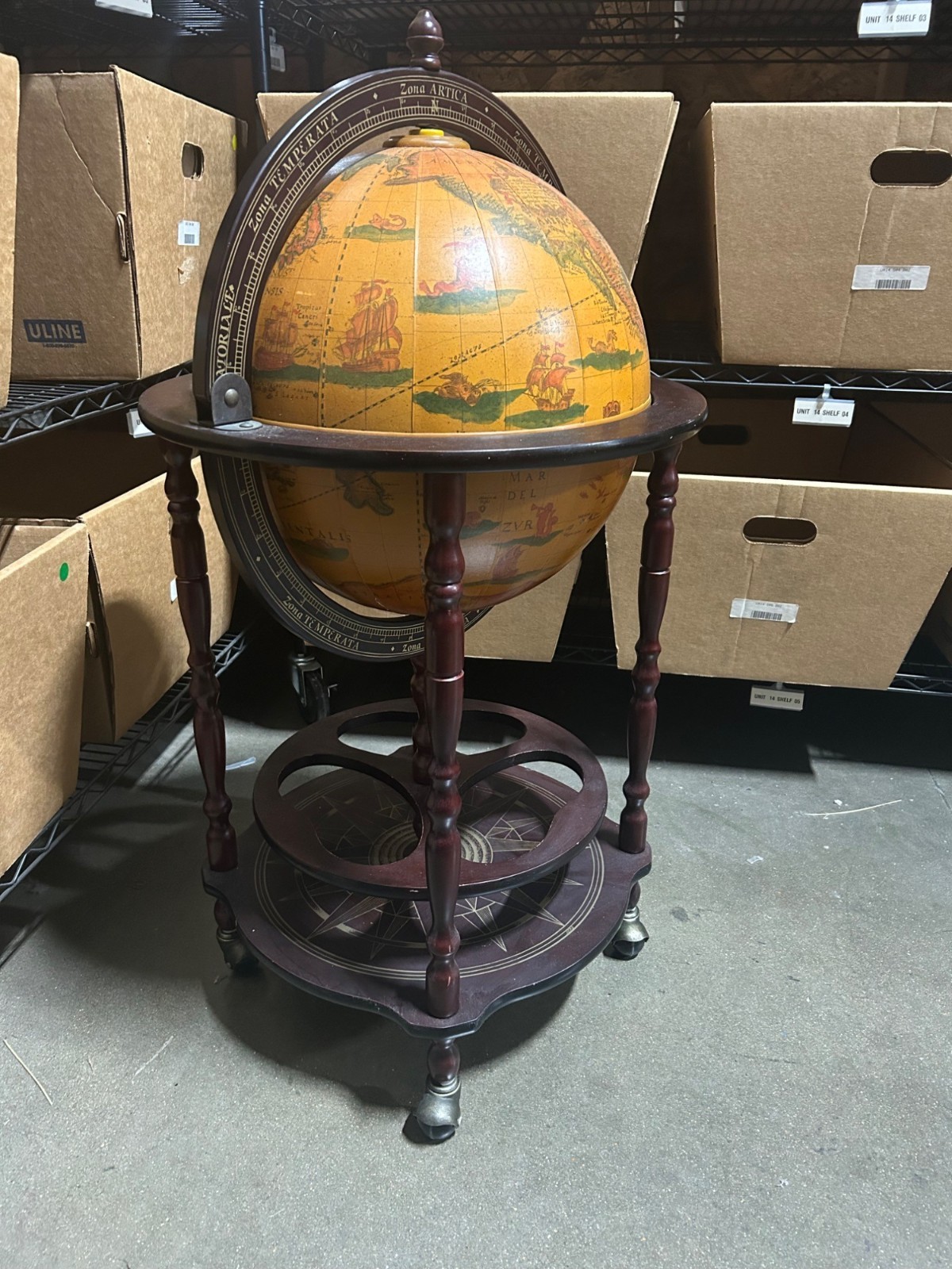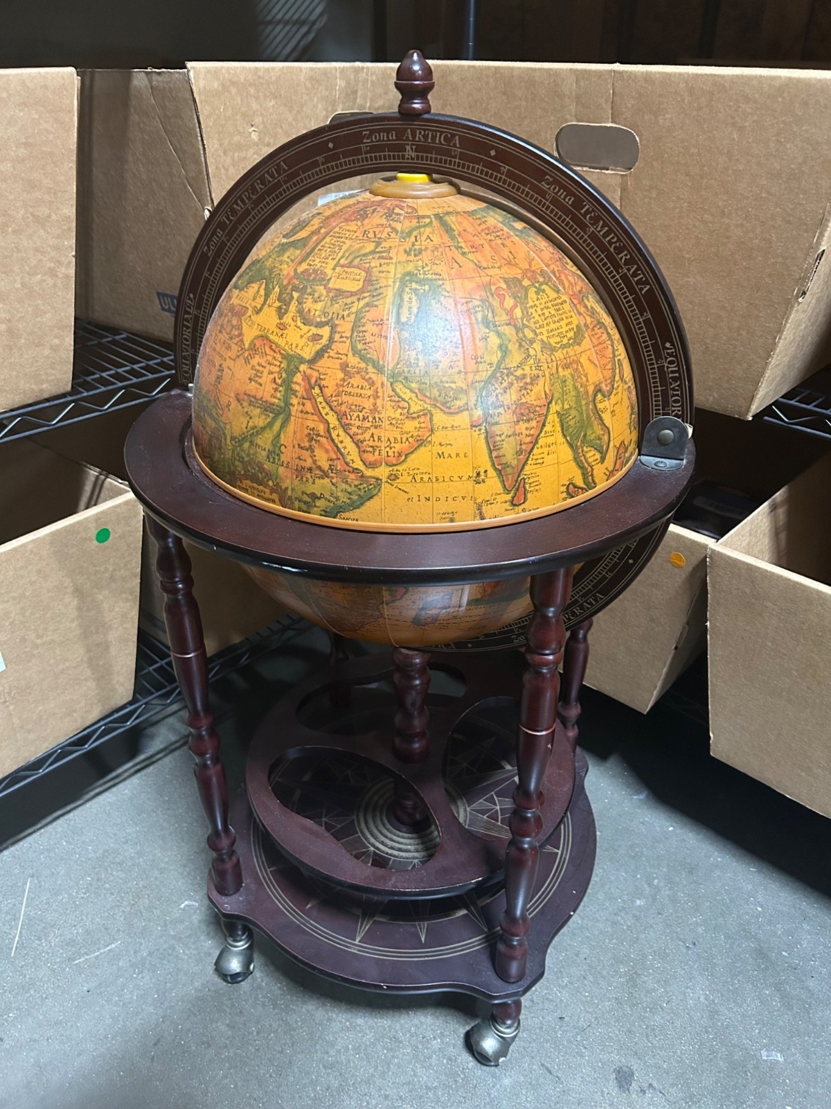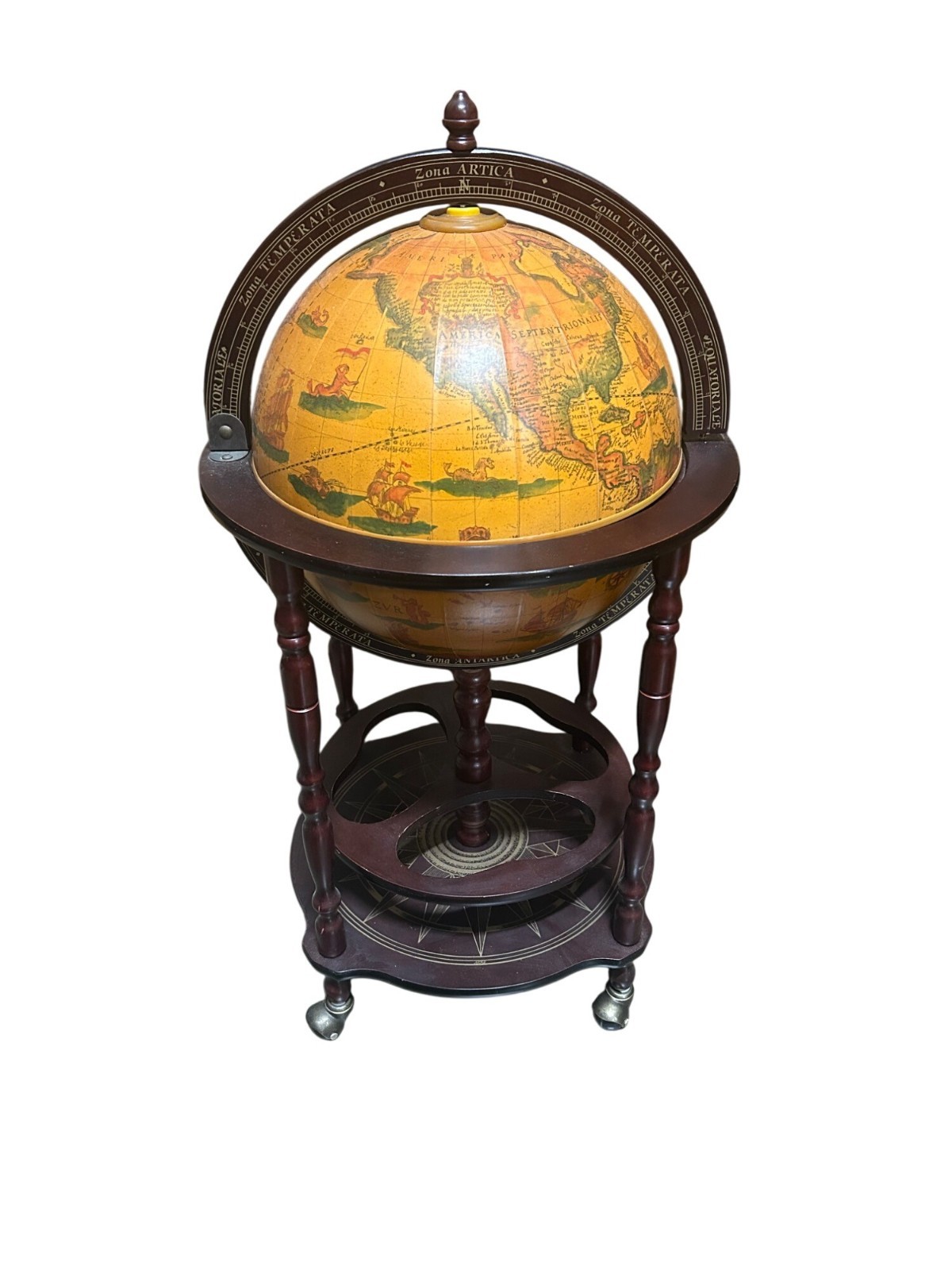 Vintage Wooden Globe Bar Cabinet Mini Bar Stand On Wheels