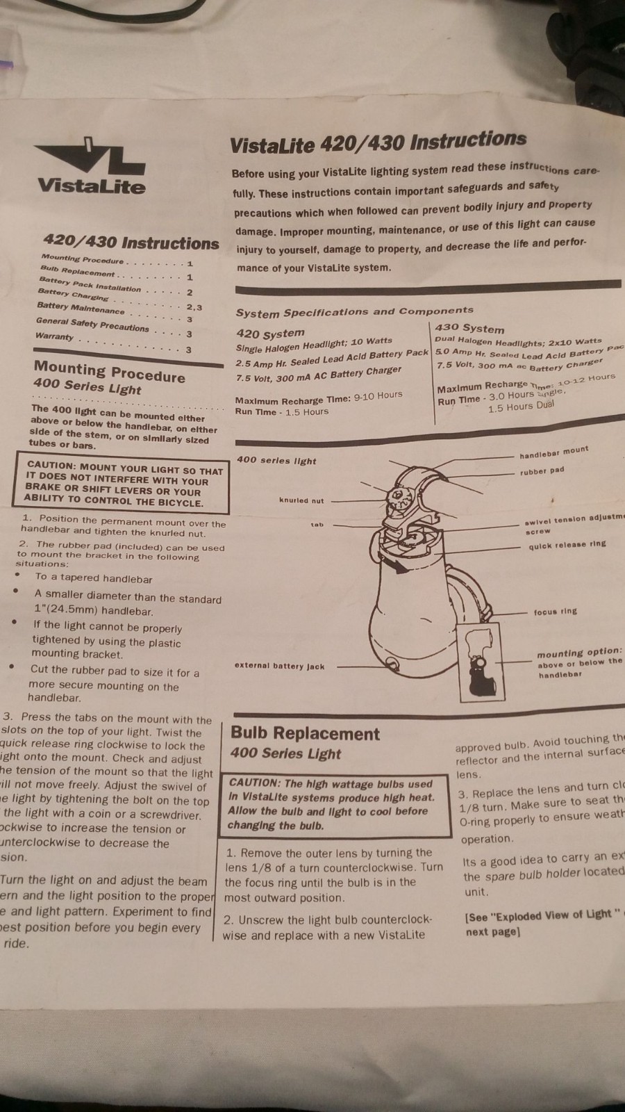 VistaLite V420 10 Watt Rechargeable Halogen Headlight System