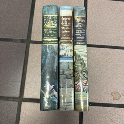 Vtg 3 Illustrated BooksHardcover King Arthur/Three Musketeers/Swiss family Robin
