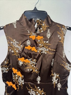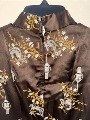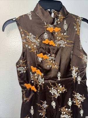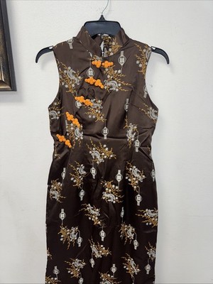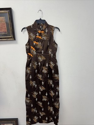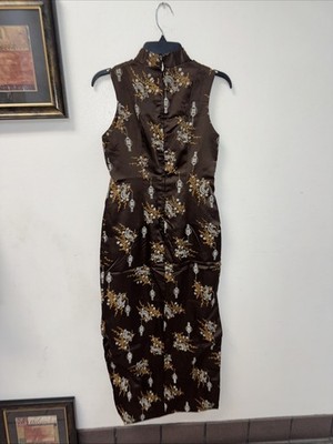 VTG 60's-70's ORIENTAL ASIAN STYLE FLORAL DRESS SIDE SPLIT Browns