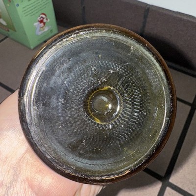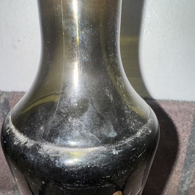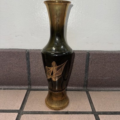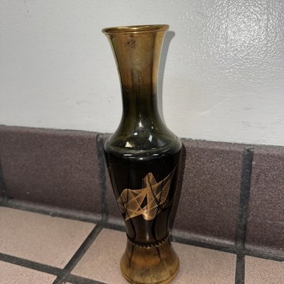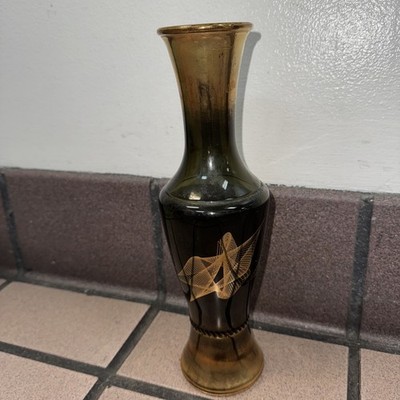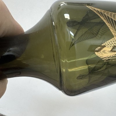 Vtg. MCM 11" Wheaton Ware Olive Green w/Gold Glass Vase With String Art Design