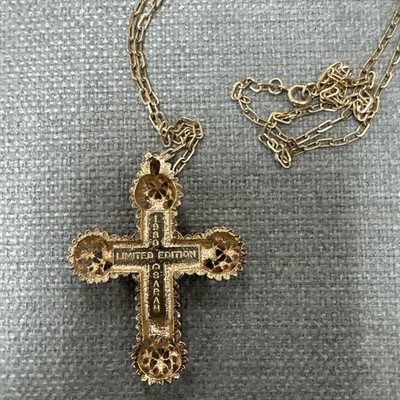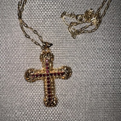 Vtg Sarah Coventry Red Rhinestone Cross Pendant Ltd 1980 Gold Tone 26" Necklace
