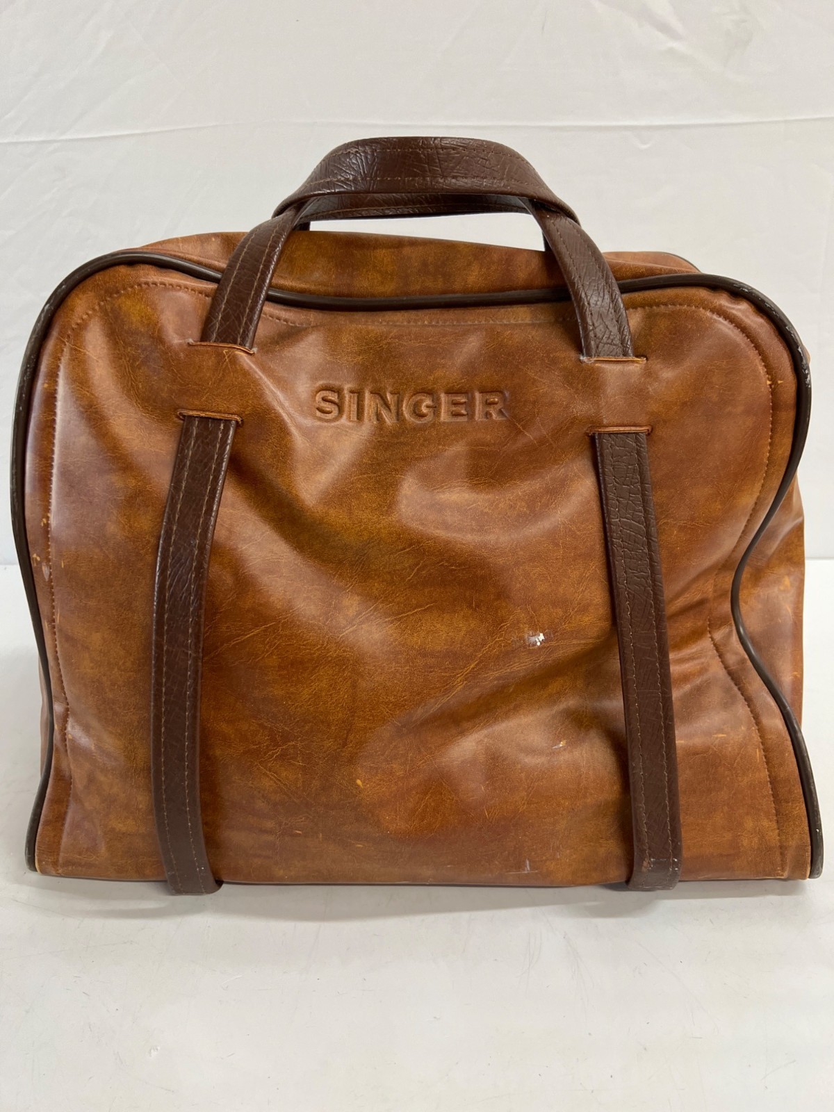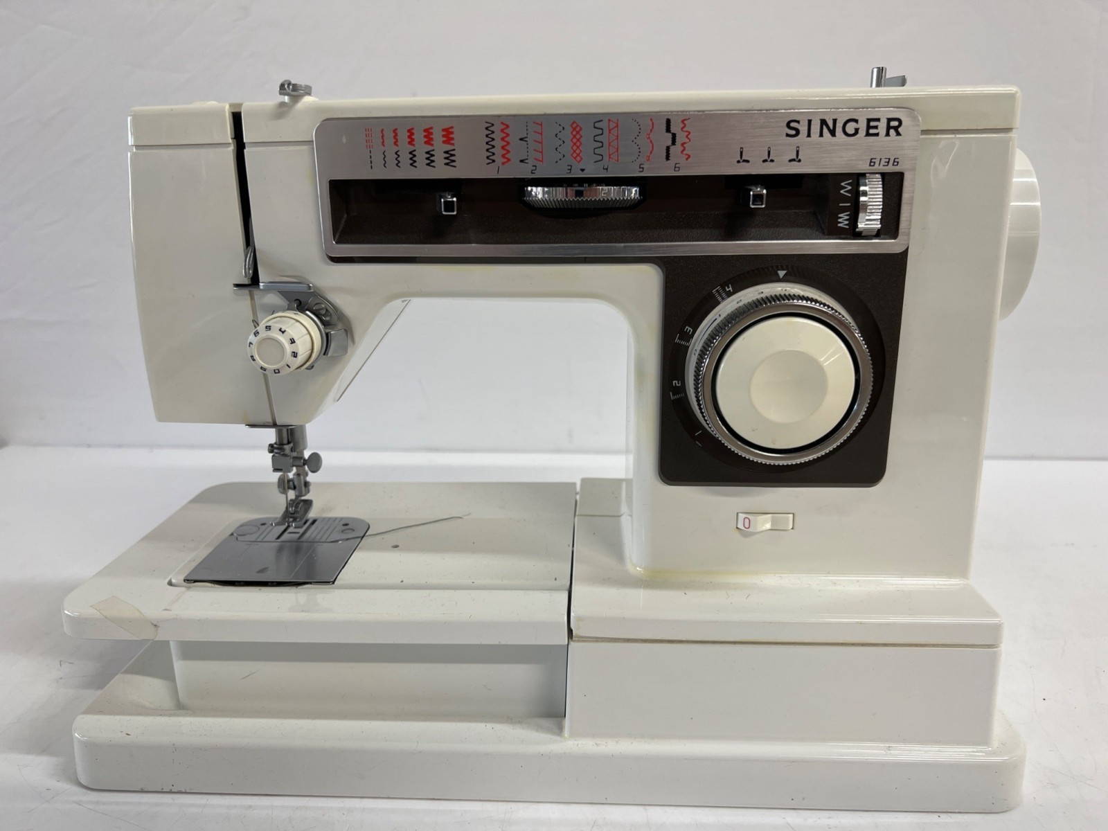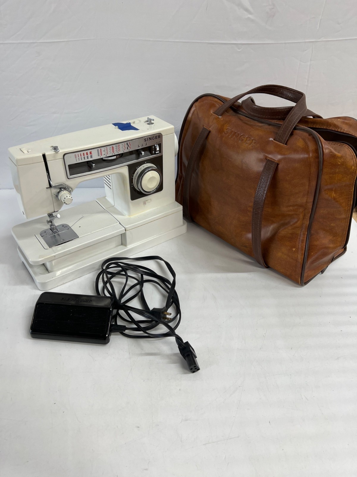 Vtg SINGER 6136 Sewing Machine w/ Pedal in Leather Carrying Bag (Tested)