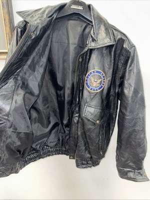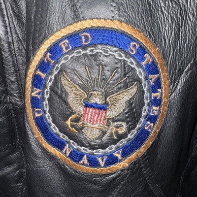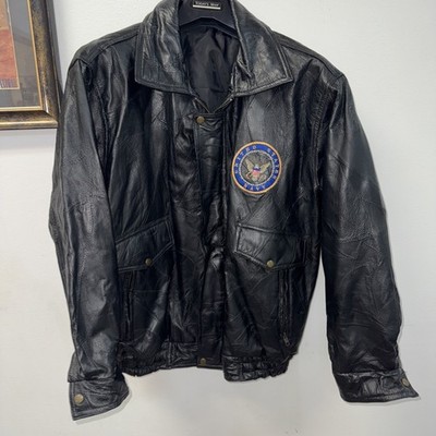 Vtg United States Navy Patch Italian Stone Design M /Leather Jacket Coat 80s