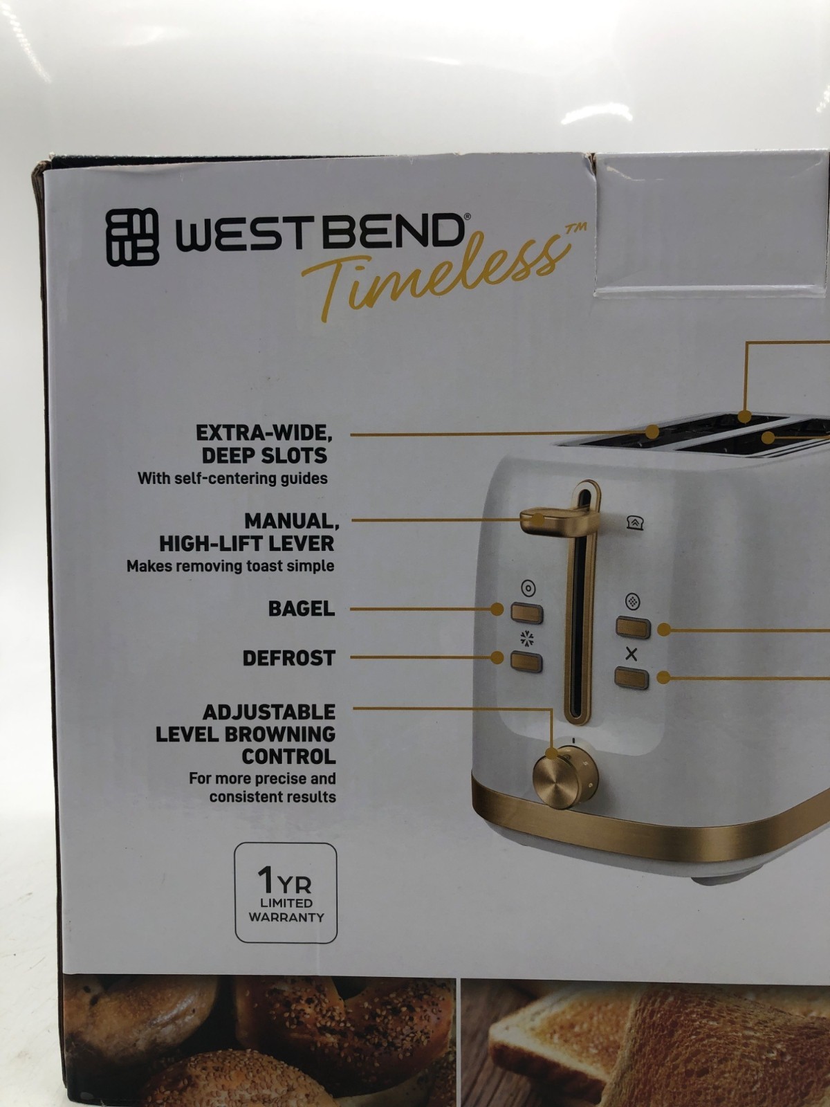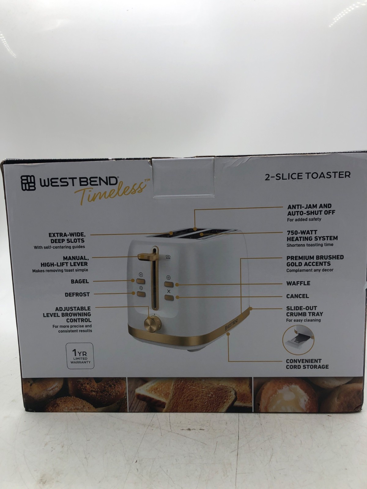 West Bend Timeless 2-Slice Toaster Extra Large Slots (White)- Open Box